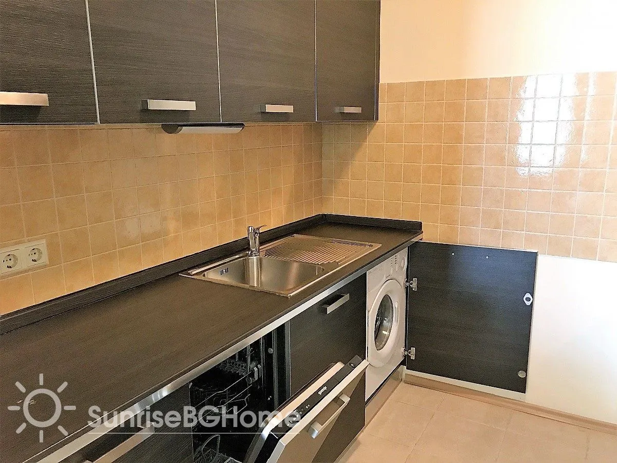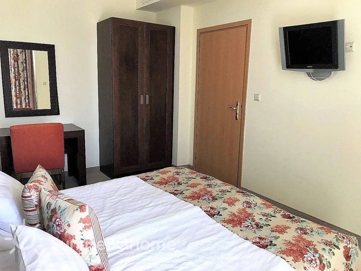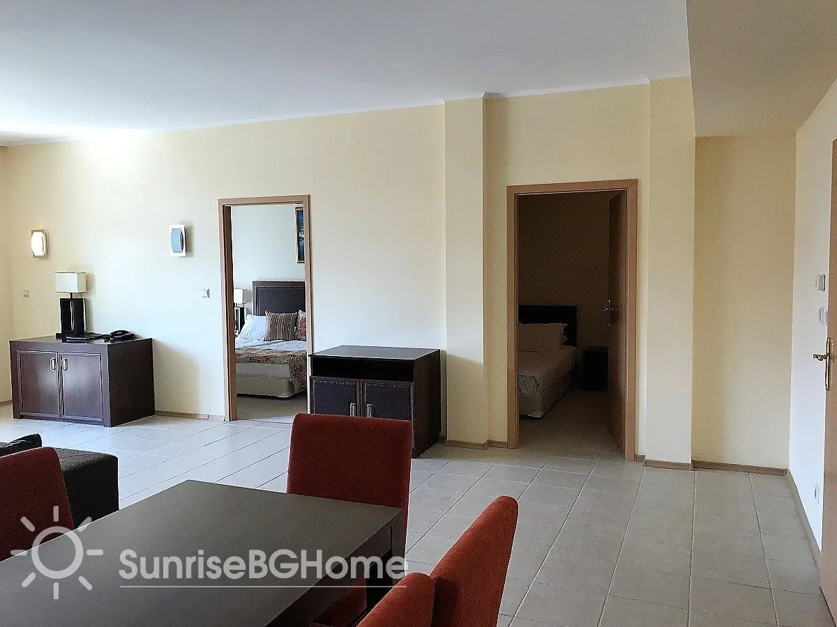 Продается меблированный и полностью оснащенный апартамент в пятизвездочном комплексе „Sunset Resort “ на первой линии моря в г. Поморие, в 15 км от города Бургас, на побережье Болгарии.