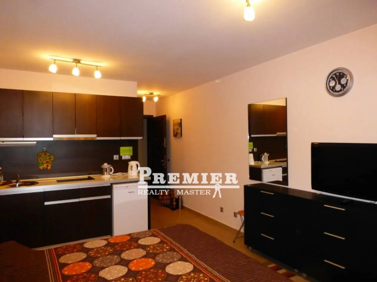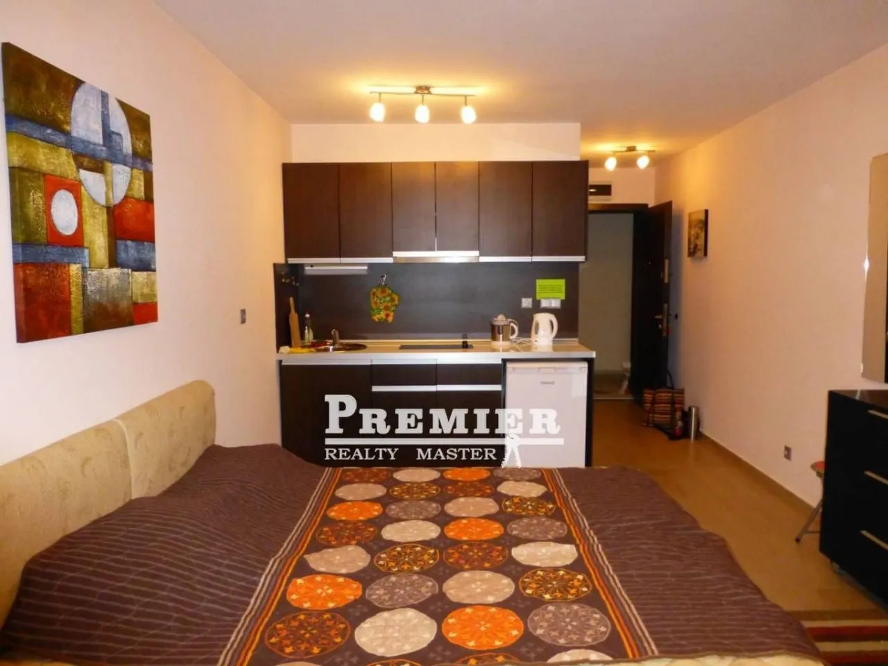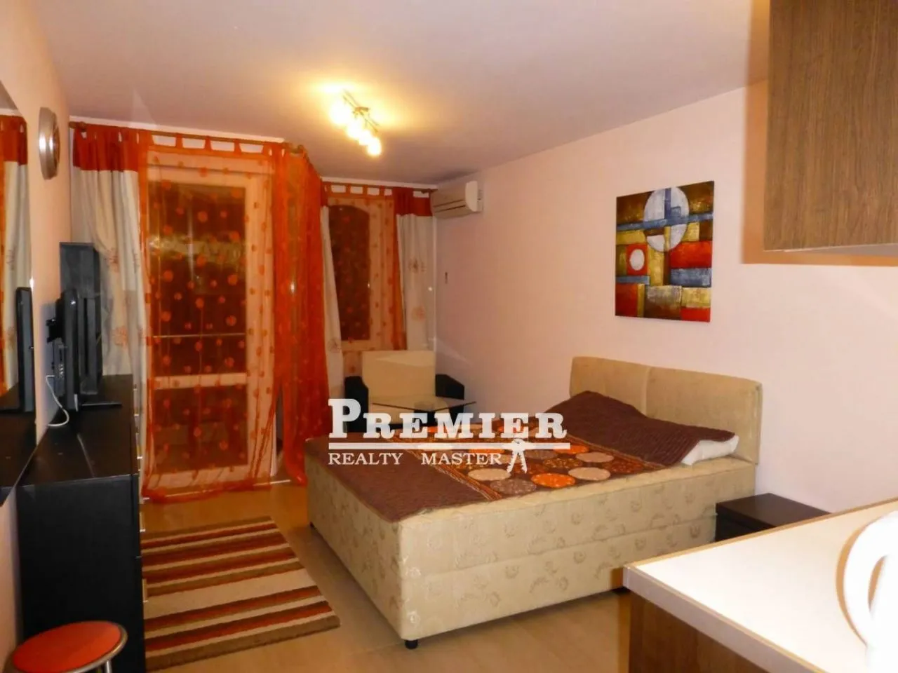 Продается студия до моря 200 метров, пляжи бесплатные (3-5 мин. пешком). Такса за обслуживание 8 евро за метр в год. Современный закрытый комплекс , во дворе два бассейна, один небольшой, другой большой бассейн + два детских, детская площадка, Spa- центр, парковка, прачечная, ухоженная красивая территория, сад роз, ресторан, круглосуточная охрана, видеонаблюдение. В квартире-студии на 3 этаже с видом на бассейн балкон, кухня, холодильник, плита, вытяжка, шкаф, комод, телевизор, кондиционер, wi-fi роутеры - всё готово к проживанию. Рядом есть магазин, аптека, рестораны, пекарня-закусочная. В пешей доступности оптово-розничный магазин Жанет 10-12 минут. До центра города пешком 15 минут, либо на автобусе или такси 5 мин., Недалеко от комплекса есть аквапарк, до него ходит бесплатный автобус, ехать не больше 5 минут. До аэропорта в г. Бургас 20 км.