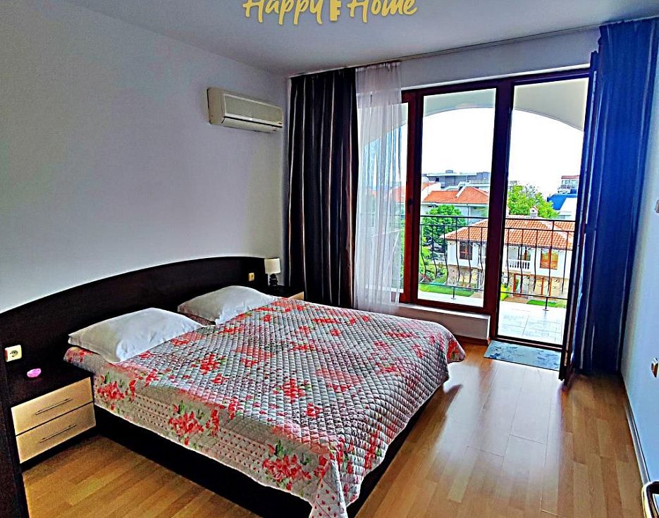 Двухкомнатная квартира в комплексе «Triumf», Святой Влас Площадь: 60 кв.м, Этаж: 2/6 Планировка: прихожая, гостиная с кухней, спальня, ванная комната и терраса. Продается с мебелью и оборудованием. «Triumf» - великолепный жилой комплекс со всеми удобствами, расположен в городе Святой Влас, всего в 200 метрах от моря и песчаного пляжа, яхтенной гавани Марина Диневи. Инфраструктура: благоустроенная озелененная территория, ландшафтный дизайн, бассейн с детской секцией, зона для загара и отдыха, бар, рецепция и консьерж-сервис, ресторан, конференц-зал, салон красоты, фитнес-зал, сауна, парная, детский клуб, магазин, детская площадка, зона барбекю, круглосуточная охрана, охраняемая парковка, лифты. Плата за обслуживание - 10 евро/кв.м в год. Подходит для круглогодичного проживания или аренды. Добро пожаловать! Переходите по ссылке во вкладке информация на наш сайт!