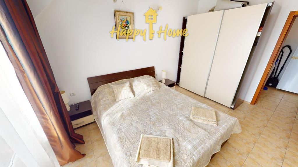 Квартира с двумя спальнями в к-се «Blue Waters», Святой Влас Площадь: 92 кв.м, Этаж: 4/5 Планировка: прихожая, гостиная с кухней, две спальни, ванная комната и терраса с видом на море. Квартира продается полностью меблированной и оборудованной. Комплекс «Blue Waters» - великолепный жилой комплекс со всеми удобствами расположен в районе Марина Диневи в 150 м от пляжа. Инфраструктура: благоустроенная озелененная территория, ландшафтный дизайн территории, бассейн с детской секцией, зона для загара и отдыха, панорамная терраса на крыше с джакузи и видом на море, рецепция и консьерж-сервис, лифты, лобби-бар, детская площадка, зона барбекю, парковка, круглосуточная охрана и видеонаблюдение. Такса поддержки – 500 евро в год. Подходит для круглогодичного проживания или аренды. Добро пожаловать! Переходите по ссылке во вкладке информация на наш сайт!