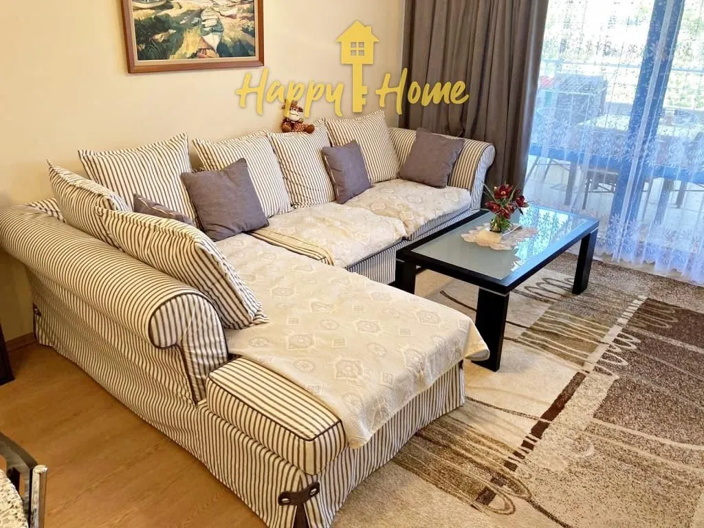 Двухкомнатная квартира в 80 м от моря в к-се «Еxcelsior», Солнечный берег Площадь: 83 кв.м, Этаж: 4/6 Планировка: прихожая, коридор, гостиная с кухонной зоной, санузел и терраса с видом на бассейн и море. Квартира продается с мебелью и оборудованием. Закрытый комплекс «Еxcelsior» находится в центре курорта Солнечный берег, рядом с местами для развлечений, всего в 80 метрах от берега моря. Для удобства гостей комплекс предлагает благоустроенную территорию, бассейн для взрослых и детей, зона для загара и отдыха, ресепшн, лобби бар, ресторан, магазины, детская площадка, фитнес, ресепшн, , круглосуточная охрана и видеонаблюдение, лифты, зона барбекю, парковка. Такса поддержки 9 евро/кв.м в год. Отличный вариант для инвестиции! Добро пожаловать! Переходите по ссылке во вкладке информация на наш сайт!