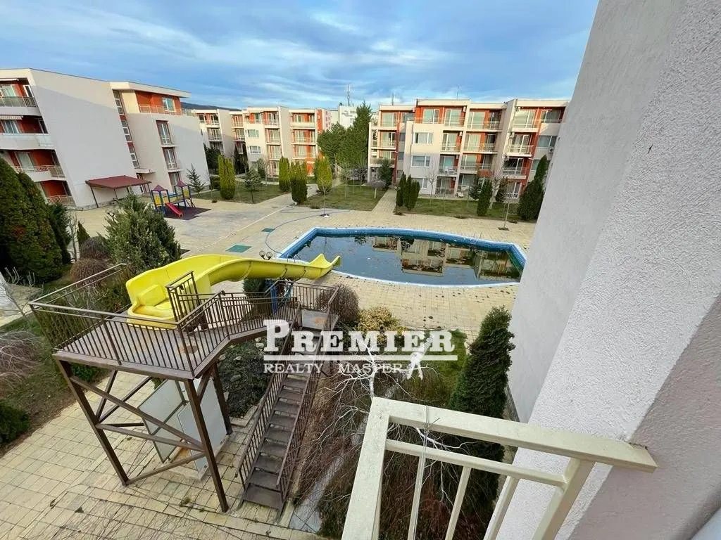 Предлагаем вашему вниманию большую студию-55 кв.м, расположенный в к. к Солнечному Берегу, в закрытом жилом комплексе. Комплекс очень большой и хорошо устроен, закрытого типа, охраняется круглосуточно и круглый год. Есть 6 бассейнов. Прекрасный садовый дизайн. До моря 800 м комплекс предназначен для сезонного семейного отдыха и круглогодичного проживания. Особенно рекомендуется для семей с детьми. Разрешено размещение домашних животных. Есть кабельное телевидение и интернет. В комплексе есть ресторан, волейбольная площадка, поле для мини-футбола, фитнес-центр, отделение поликлиники Св. Никола, прокат машин. Около 50 метров находится самый большой в Несебре аквапарк. 100 м до автобусной остановки N 2 Солнечный Берег - Ст. Несебр и гипермаркет.