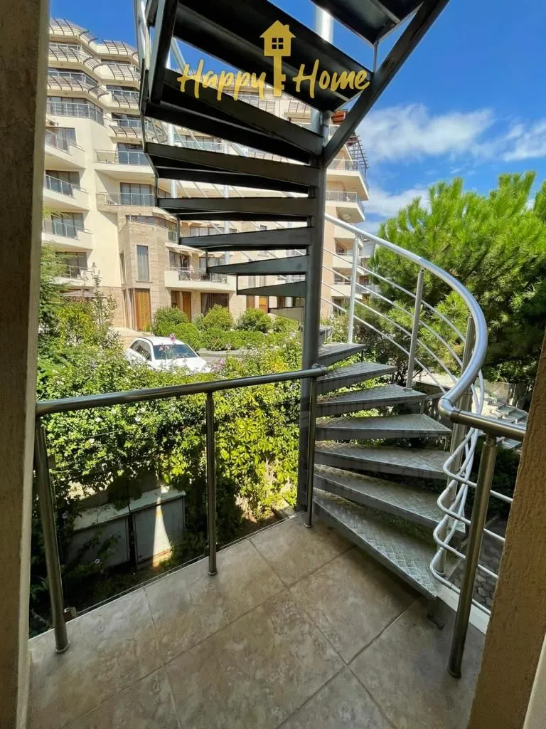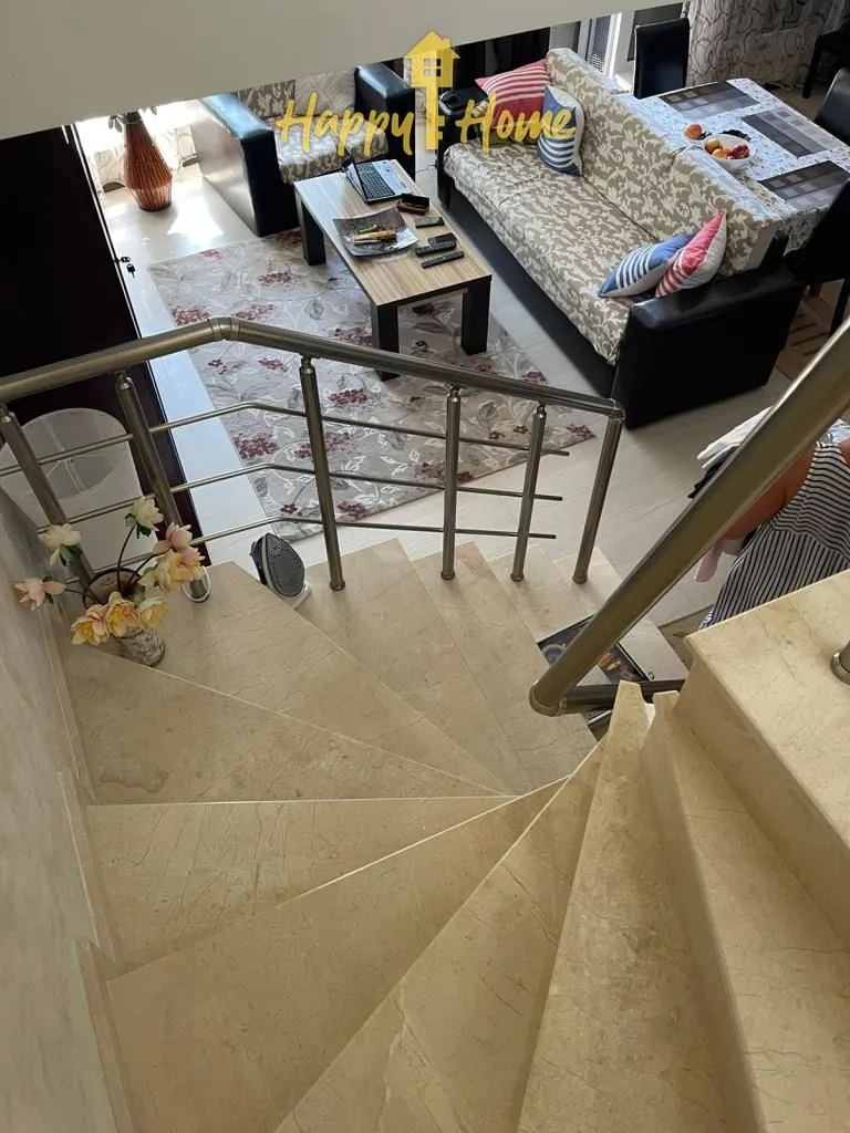 Трехкомнатная квартира к-се «Мирный», Святой Влас Площадь: 106,71 кв.м, Этажи: 1-2 Продается с мебелью и оборудованием. Планировка: 1 этаж - просторная кухня с гостиной, прихожая, санузел и терраса с видом на бассейн и территорию комплекса. 2 этаж – две спальни, санузел и две террасы. Здание Мирни (Мирный) – находится на территории комплекса Millenium. Это ультрасовременный жилой комплекс, расположенный в экологически чистом городе Святой Влас. В тихом и спокойном месте, всего в 200 м от золотистого песчаного пляжа. Построен по индивидуальному проекту с использованием самых современных технологий и самых качественных материалов. Фасады здания облицованы природным камнем. Удобства: зеленая, хорошо освещенная территория, флора которой насчитывает более 100 видов растений, бассейн, ресторан, Wi-Fi, SPA-центр, медицинский центр, фитнес-центр, паркинг, сервис и обслуживание, охрана, лифты. Такса содержания - 10 евро/кв.м в год. Прекрасно подходит для круглогодичного проживания. Добро пожаловать! Переходите по ссылке во вкладке информация на наш сайт!