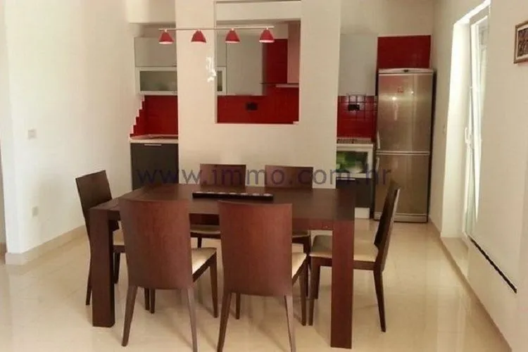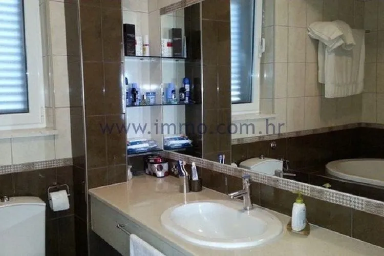 Продается красиво оформленная квартира, расположенная в Подстране, ок. 10 км к югу от Сплита. Квартира находится на первом этаже небольшого жилого здания, полностью меблирована и оборудована по самым высоким стандартам. Состоит из большой гостиной с кухней и столовой, трех спален, двух ванных комнат и террасы. По внутренней лестницей прямо из квартиры доступен гараж и складское помещение (36м2). К квартире относится и участок возле дома, площадью 20 м2. Квартира ориентирована на запад, очень светлая и просторная, имеет фантастический панорамный вид на море.