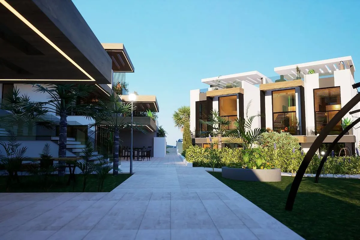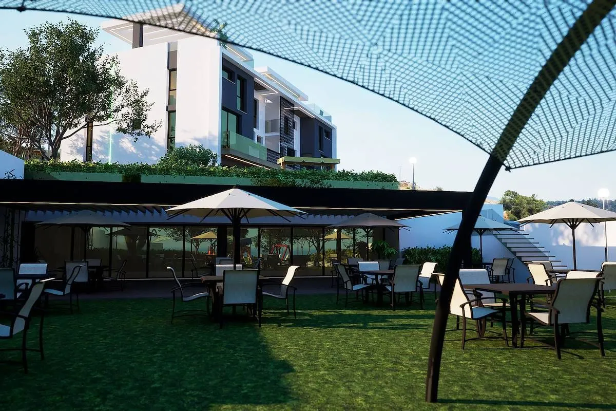 Современный комплекс с фитнес-клубом и спа, расположенный в шаговой доступности от оборудованного песчаного пляжа в районе Эсентепе .