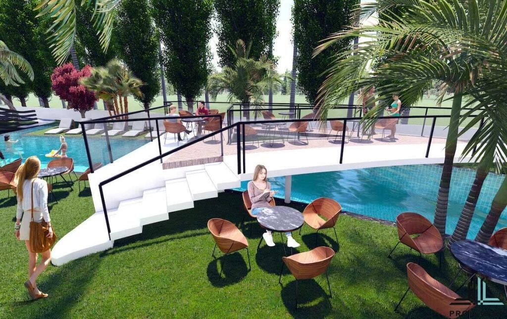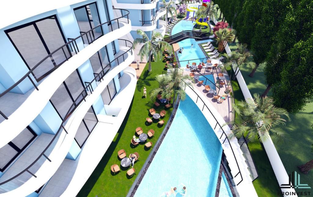 Для жильцов в комплекса на территории есть барбекю, стоянка для автомобилей. Так же Вас ждет бассейн и фитнес-центр. У бассейна оборудованы лежаки, зонтики и бар. Для детей с детьми на территории построена шикарная детская площадка и аквапарк. А для любителей спорта — сауна, СПА центр и салон красоты.
