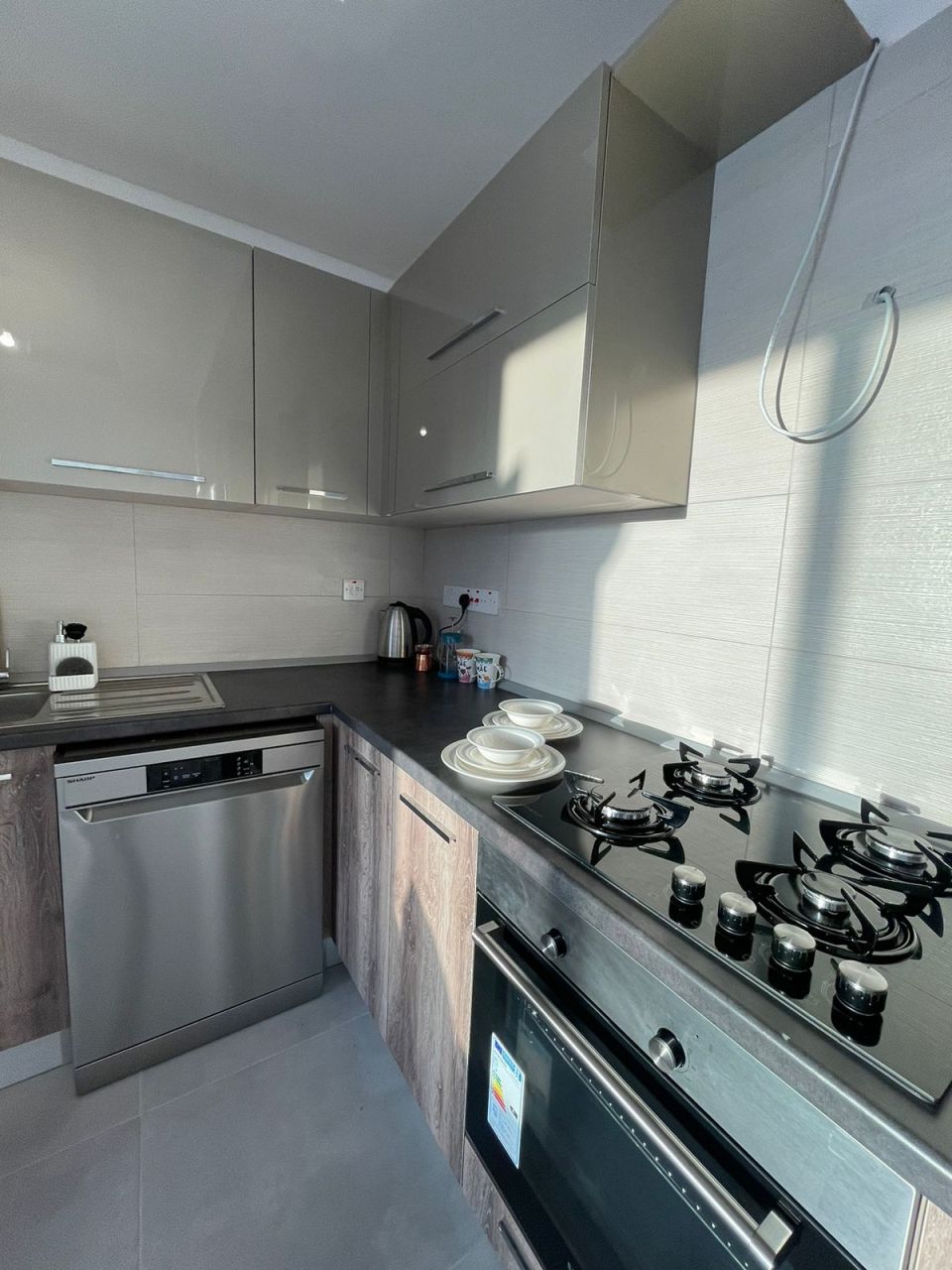 Квартира имеет планировку 2+1 и площадь 75 м2, что означает наличие 2 спален, 1 гостиной с кухней и санузла. Квартира на фото представлена с мебелью, но продается без мебели. Это значит, что в ваше распоряжение вы получите полностью готовую кухню с гарнитуром и столешницей, техникой – посудомоечной машиной, холодильником, плитой, духовкой, а также есть выход на вытяжку. В ванной комнате качественная сантехника - душ, унитаз, зеркало, раковина и тумба. В спальне также есть встроенный в стену шкаф. Во всей квартире премиальные напольные и настенные покрытия, а также великолепный балкон с видом на город, природу и горы. В квартирах есть стальная входная дверь, а также гардеробная. В оформлении использованы паркет и натуральный мрамор.