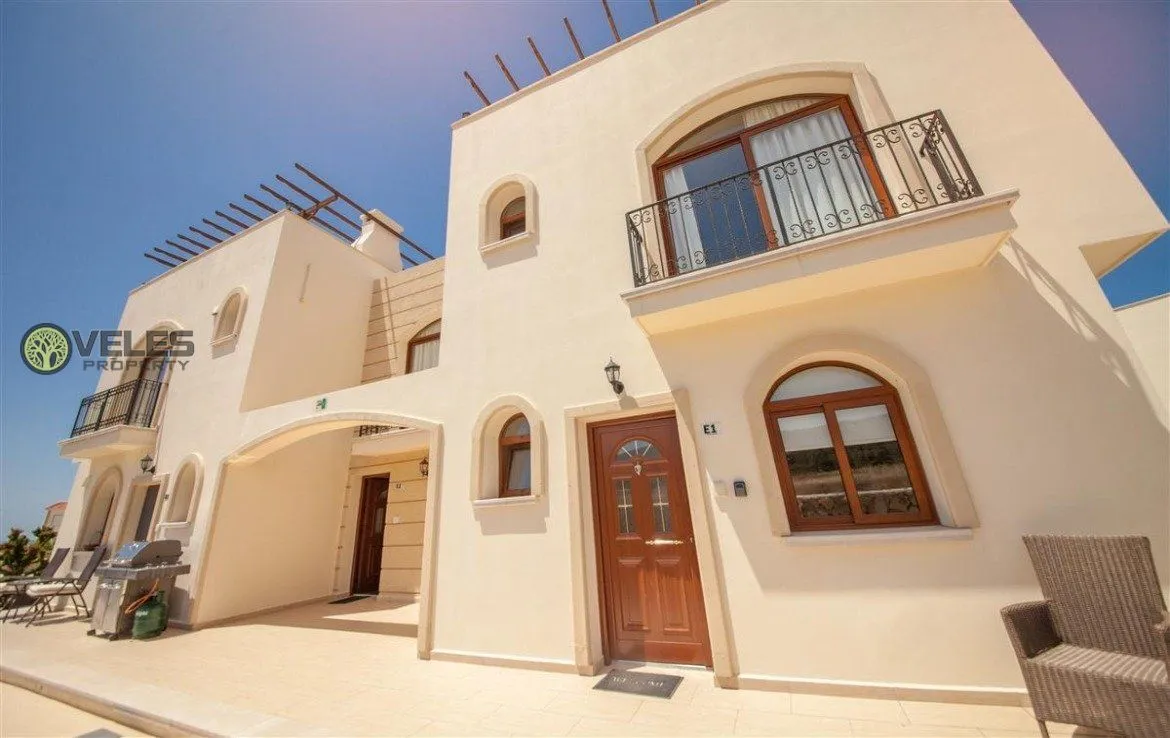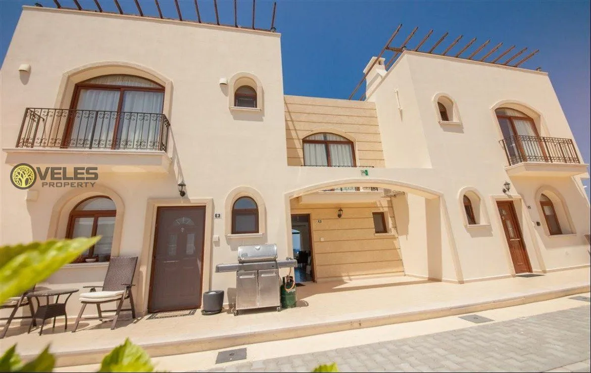 Мы представляем Вашему вниманию таунхас в комплексе от застройщика. Эта прекрасная вилла находится в районе Эсентепе и буквально в двух шагах от моря. За счет того что комплекс находится на небольшом возвышении с виллы открывается прекрасный вид на море. А также, на Киренийский горный хребет и гору Бешпармак.