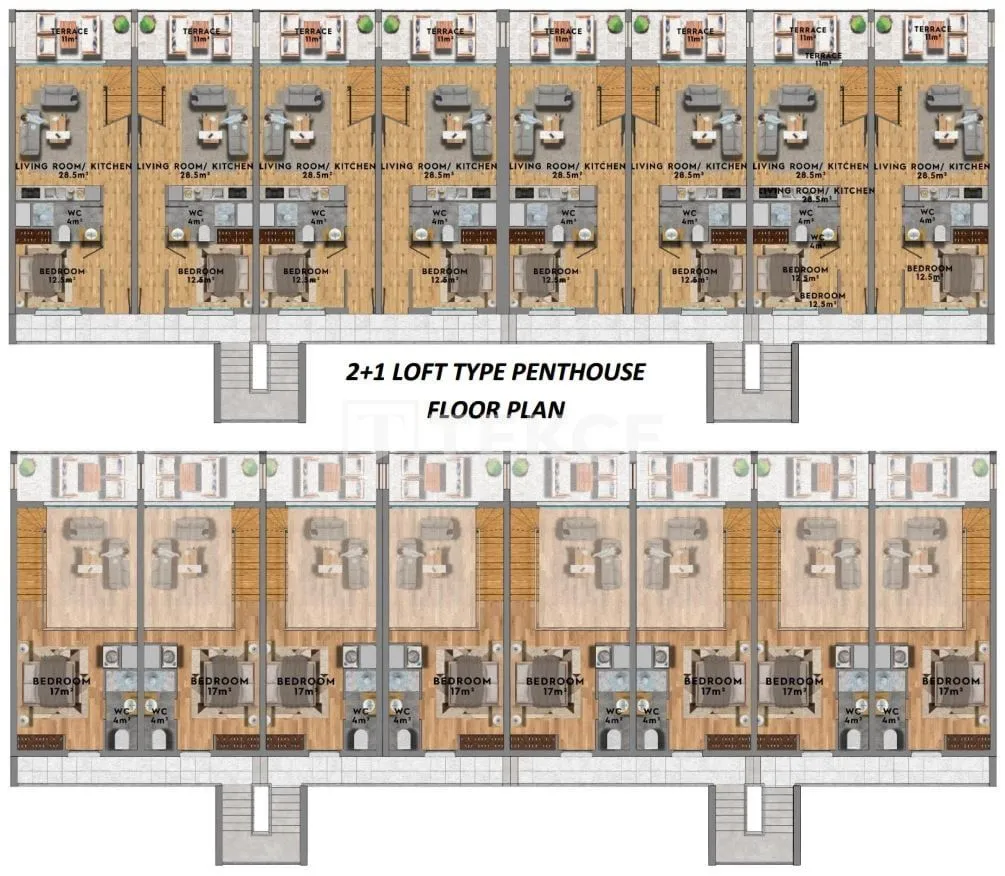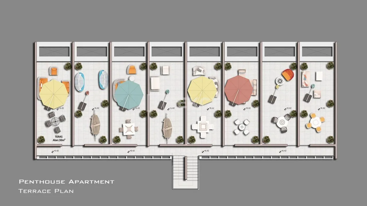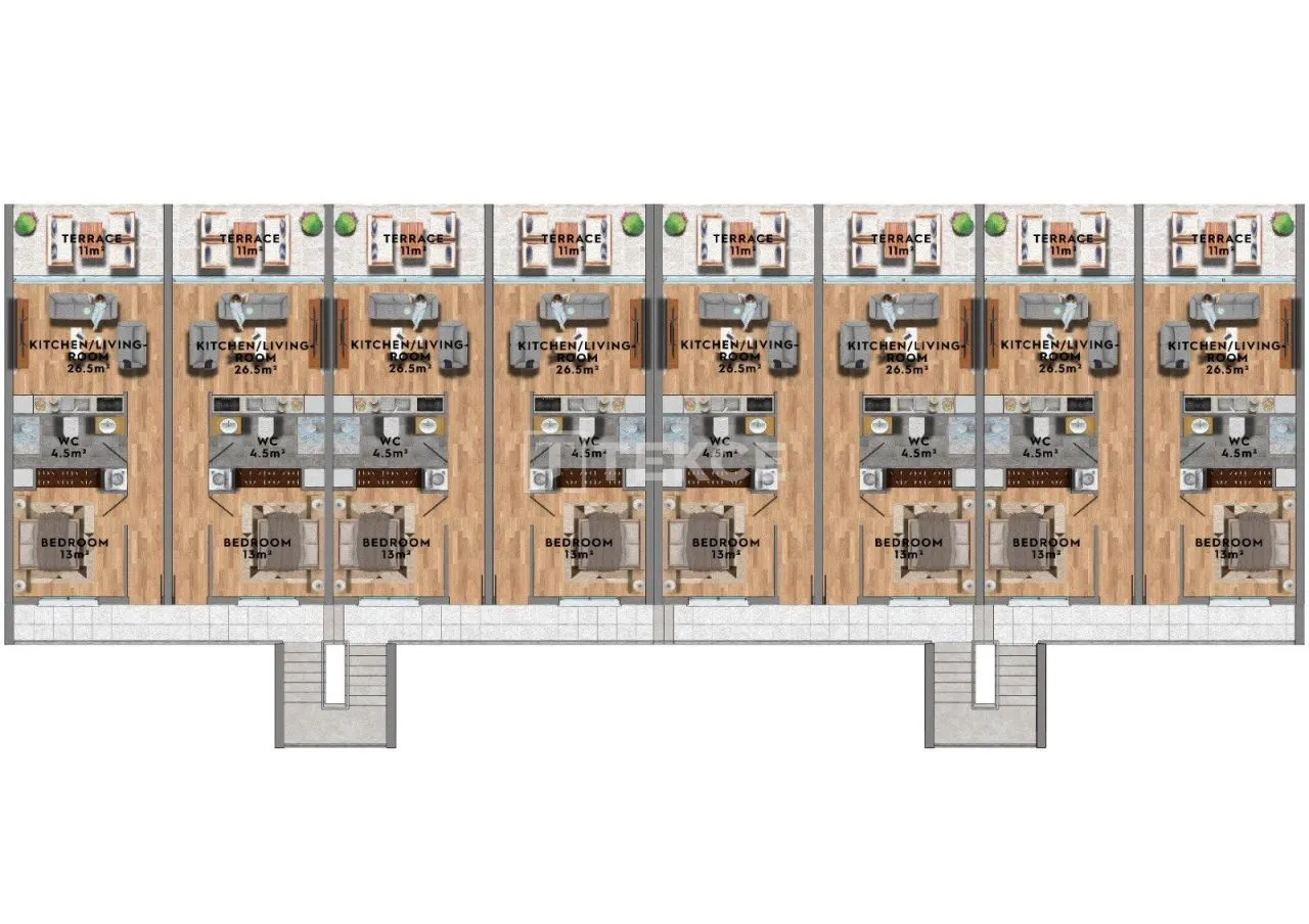 В рамках проекта доступны квартиры различных планировок: студии, 1+1 и лофты 2+1. Лофты имеют 2 спальни, отдельную ванную комнату в главной спальне и террасу на крыше. Современные квартиры предусматривают наличие террас и оснащены центральной спутниковой телевизией, инфраструктурой для подключения интернета и кондиционеров.