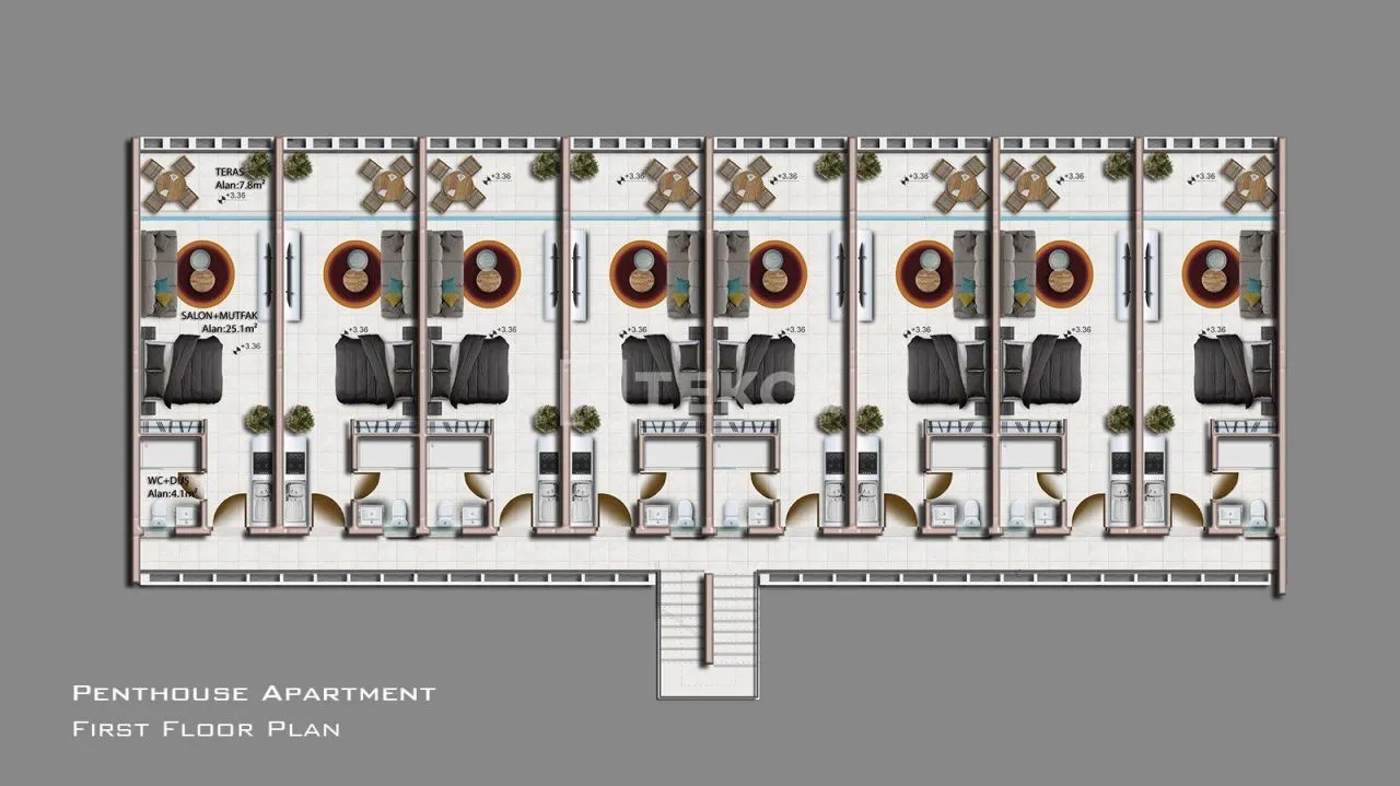 Квартиры с современным дизайном расположены в проекте смешанного типа, состоящем из двухэтажных блоков. Всего в комплексе, построенном на участке площадью 100 000 м², находится 655 квартир. Этот роскошный проект предлагает общий сад, бассейн, спа-центр, сауну, оздоровительный центр, турецкую баню, ресторан и множество других удобств. Для каждой квартиры предусмотрено парковочное место.