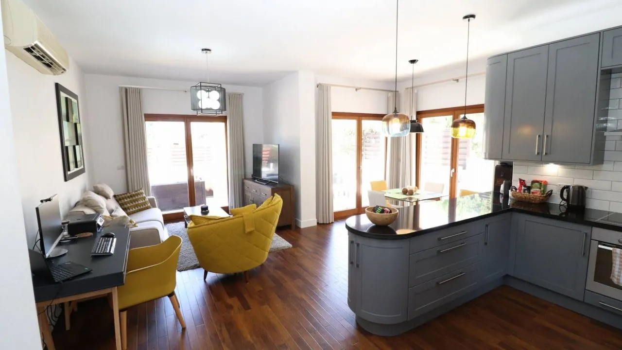 Этот великолепный таунхаус расположен в эксклюзивной зоне Hestiades Green с видом на первую лужайку поля для гольфа мирового класса, всего в нескольких минутах ходьбы от 5-звездочных удобств, которые может предложить курорт. При входе в дом вас встречает очень просторная гостиная с кухней-столовой открытой планировки со стеклянными дверями во всю длину, пропускающими достаточно света. Кухня оборудована по последнему слову техники, оснащена новейшей фирменной техникой, а также роскошной фурнитурой и фурнитурой. На первом этаже расположена просторная спальня с роскошными встроенными шкафами и гостевая гардеробная с душевой кабиной.