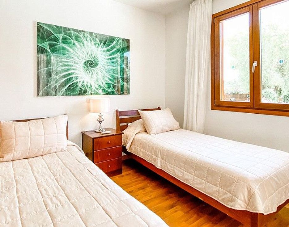 Эта отдельно стоящая вилла с тремя спальнями и двумя ванными комнатами расположена в тихом тупике улицы на Западном плато, в нескольких минутах ходьбы от курортных объектов. Имущество построено на большом участке и представляет потрясающий передний и задний сад со зрелыми кустарниками и деревьями, частный бассейн и парковку во дворе. В доме - просторная гостиная и столовая на первом этаже с большой, полностью оборудованной кухней. На этом же уровне находится гостевая спальня с ванной комнатой. Вилла полностью кондиционирована и имеет камин в гостиной с необычной зоной с галереей. Гостиная и столовая, а также гостевая спальня имеют выход на большую террасу. На втором этаже находятся еще две просторные спальни с видом на сад, поле для гольфа и холмы вдали и общая ванная комната. Снаружи сад в основном разбит на лужайку с бассейном, размером 10 м х 5 м и встроенным барбекю.