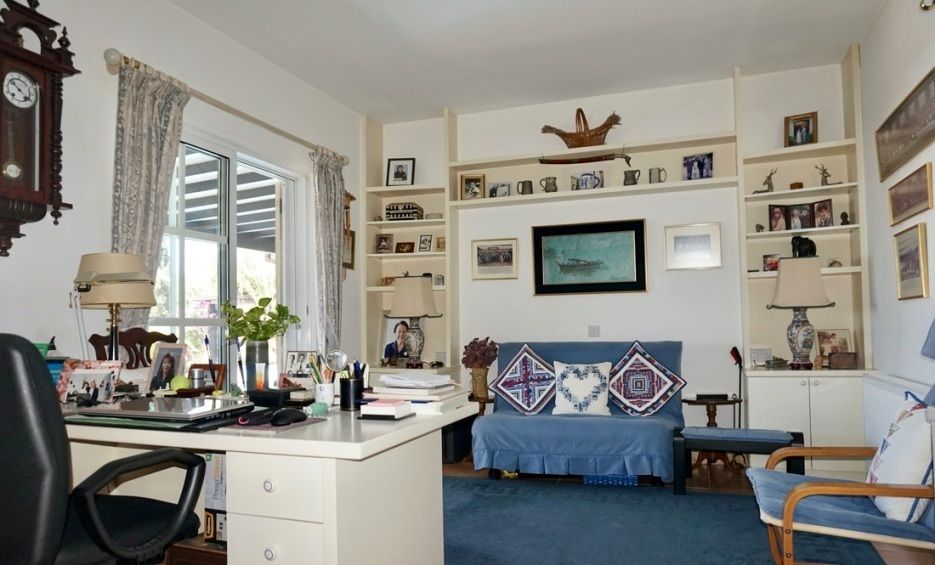 Очаровательная 4-спальная резиденция на частном приватном участке 1065 кв.м, с некоторыми домашними удобствами обеспечивающими круглогодичное комфортное проживание, с просторным внешним и внутренним размещением, предлагая разнообразие в использовании: – На первом жилом уровне есть: низкая прихожая с лестницей / открытой планировки просторная гостиная с камином / формальная столовая зона / частично раздельная оборудованная кухня с подсобным помещением / одноместная спальня со встроенными шкафами (в настоящее время – кладовая) / отдельная ванная комната / другая двухместная спальня со встроенными шкафами и со своей ванной комнатой (в настоящее время – офис), а раздвижные двери патио на этом уровне обеспечивают доступ к L-образной крытой веранде у зоны бассейна, идеально подходящей для отдыха и обедов на свежем воздухе, наслаждаясь приятной идиллической атмосферой – На втором жилом уровне расположены хорошие две спальные комнаты со встроенными шкафами и со своими отдельными ванными, где просторная главная спальня имеет дополнительно гардеробную и выход на крытый балкон с панорамным видом на море и окрестности, а другая спальня имеет доступ на свой большой балкон с беседкой и с таким же потрясающим обозрением. – Впечатляющее внешнее огороженное пространство, с обширным ландшафтным садом и фруктовыми деревьями, охватывает: просторную крытую веранду, с беседкой и с солнцезащитными навесами / солнечную площадку, с кристально чистым бассейном и с эффектными водными элементами (включая декоративный декор в виде головы льва, статую и водопад) / открытые террасы и зону барбекю / переднюю въездную дорогу (через электро-ворота) ведущую к большому гаражу и к затененной беседкой парковке, а особенной изюминкой является построенная по индивидуальному заказу отдельная мастерская-студия (с удобствами), доступ к которой осуществляется через дорожку, примыкающую к крытой веранде. В НАЛИЧИЕ ТИТУЛ СОБСТВЕННОСТИ.