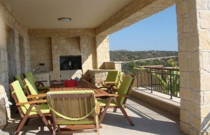 Это роскошная вилла с 5 спальнями общей крытой площадью 500 м2, построенная на частной территории площадью 3000 м2 с фантастическим панорамным видом на море, гольф и холмы Афродиты. Установлена пожарная и кражная сигнализация с круглосуточным наблюдением сотрудниками службы безопасности курорта. Парковка на три машины с автоматическими воротами с дистанционным управлением.Первый этажБольшой холл, гостевой туалет, большой шкаф с большим количеством вешалок, место для обуви, полки и ящики. Гостиная с большим камином, деревянный потолок высотой 4,8 метра. Столовая и полностью оборудованная кухня, в том числе холодильник, посудомоечная машина, обратный осмос для питьевой воды, фильтр для производства льда и все необходимое оборудование, а также гранитная столешница и брызговик. Главная спальня с двумя большими встроенными шкафами и ванной комнатой.Второй этажТри большие спальни, каждая с собственной большой ванной комнатой. В самой большой комнате есть гардеробная и балкон, а из окон открывается бескрайний вид на море.Цокольный этаж: большая комната, которую можно использовать для домашнего кинотеатра, бильярдной или другого использования.Характеристики объекта