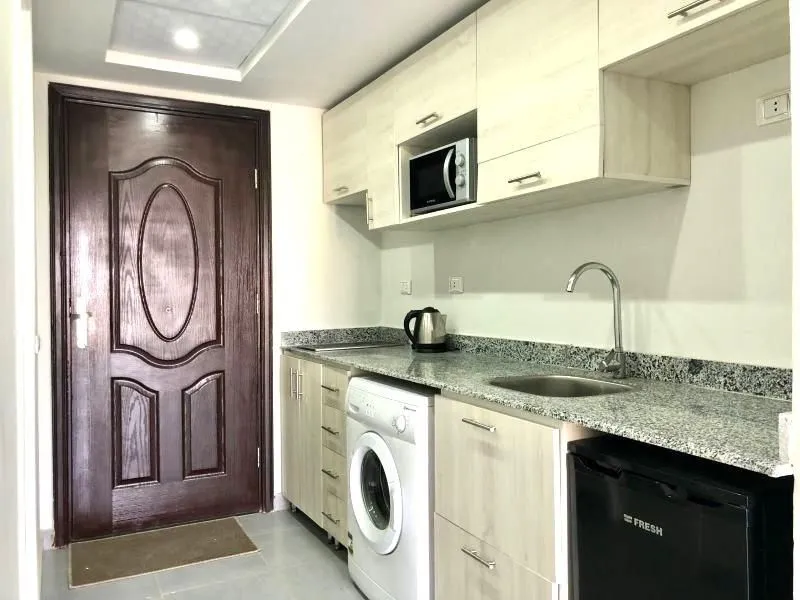 Жилой комплекс с собственным песчаным пляжем, пристанью для яхт, 3 бассейнами, детской площадкой, баром, рестораном и тренажерным залом. В жилом комплексе круглосуточная охрана, по периметру установлены камеры видеонаблюдения. Центр Хургады с кинотеатром, катком, гипермаркетом Carrefour и множеством магазинов и кафе находится в 15 минутах ходьбы от жилого комплекса. Хургада Марина и главная туристическая улица Шератон всего в 3 минутах езды от комплекса. Студия расположена на 4 этаже. Студия просторная и светлая. Общая площадь студии 49 кв.м.