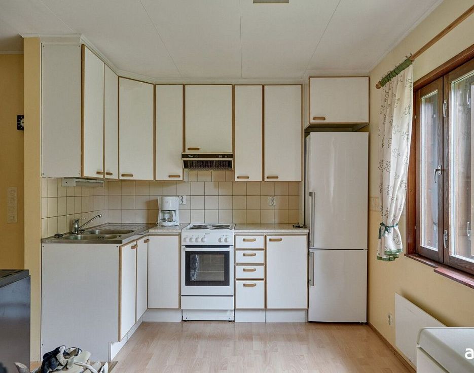 Возможно дистанционное проведение сделки без Вашего присутствия по доверенности!!! Дом для постоянного проживания в HaminaГод постройки – 1987, общая площадь – 97,7 кв.м., 1 этаж.В доме гостиная, кухня, спальня, санузел, сауна.Площадь участка в собственности – 1,4 ГаСобственная берег реки.Цена – 28 000 евро.Ежегодный налог на недвижимость – 229,81 евро / годЭлектрическое отопление.Собственный септик и канализация.До ближайшего магазина – около 6 км. До ближайшей школы – около 6 км.