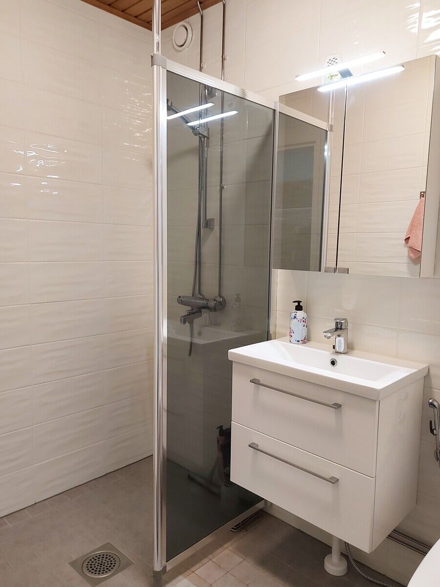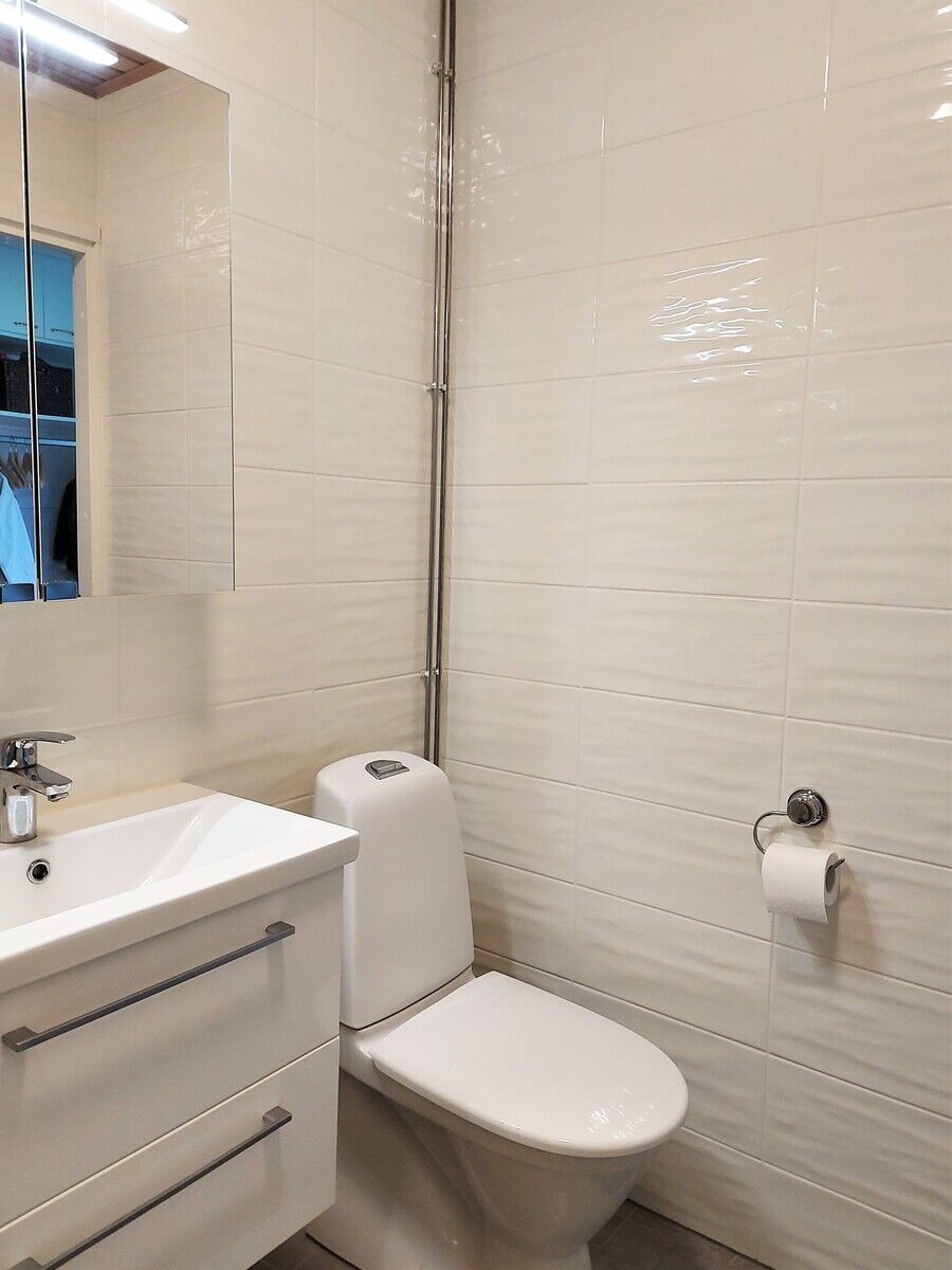 Дом 1976 года постройки, районное отопление. Кабельное ТВ. На кухне стоит посудомоечная машина, индукционная плита и холодильник / морозильник. Материалы пола: виниловая пробка. В ванне тёплые полы. В доме есть холодная кладовая для продуктов, кладовая для хранения вещей, сауна, прачечная и место для хранения спортивного инвентаря. Парковка автомобиля во дворе.