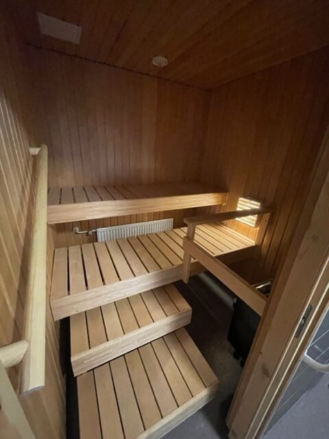 - Сауна и санузлы в квартире только что были отремонтированы.