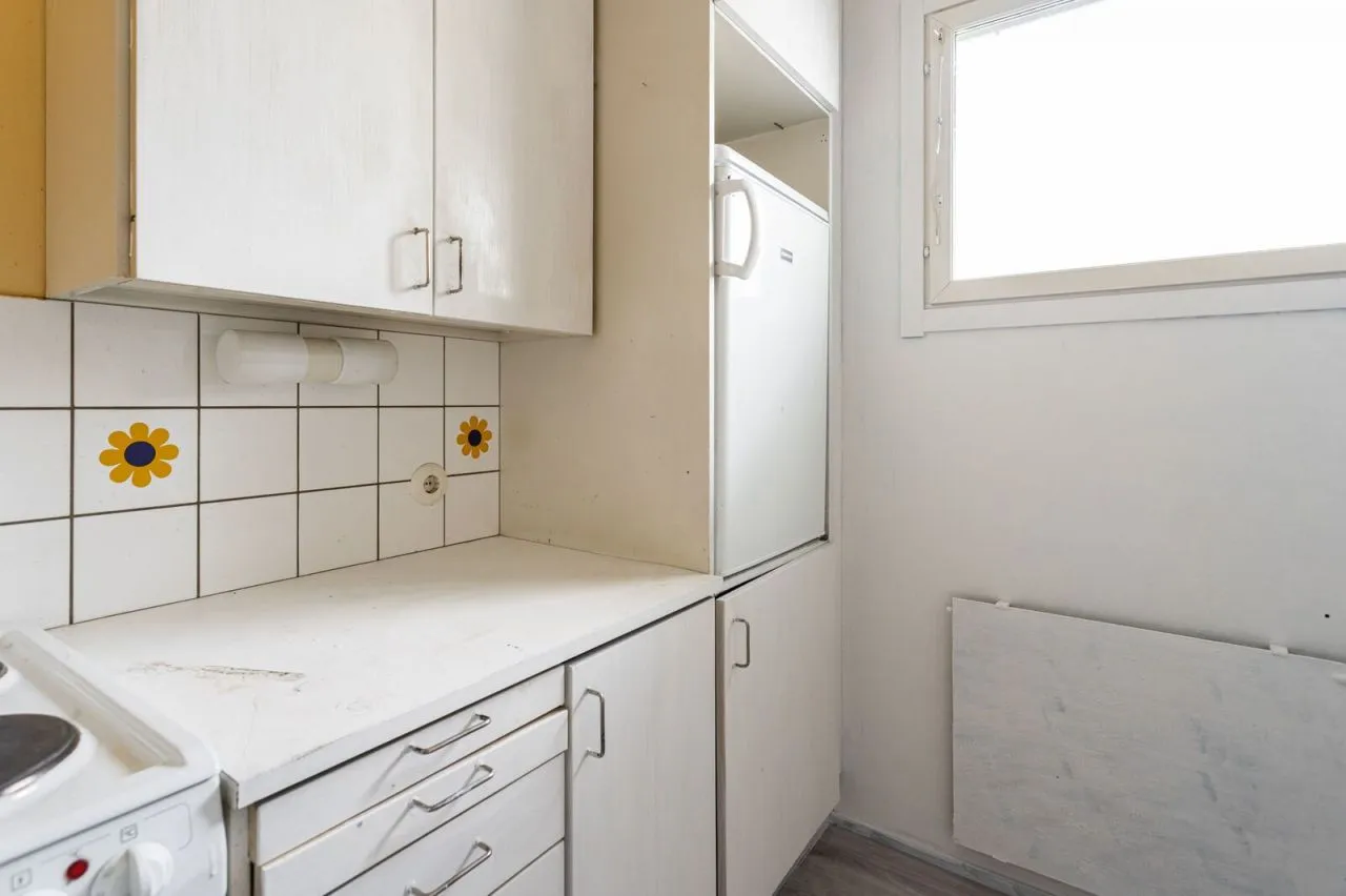 Возможно дистанционное проведение сделки без Вашего присутствия по доверенности!!! Однокомнатная квартира в ValkeakoskiГод постройки – 1970. Общая площадь – 35 кв.м. 1/3 этаж.Гостиная, оборудованная кухня, санузел. Цена – от 14 789,13 евро + рассрочка от управляющей компании за проведенные ремонтные работы в размере 13 210,87 евро, с ежемесячным платежом 107,06 евро. Коммунальные платежи – 143,31 евро / мес.Оплата за воду – по счетчику.Парковка – 2 евро / мес.Сауна в доме – 4,5 евро / мес.До ближайшего магазина – около 200 метров. До ближайшей школы – около 2 км.