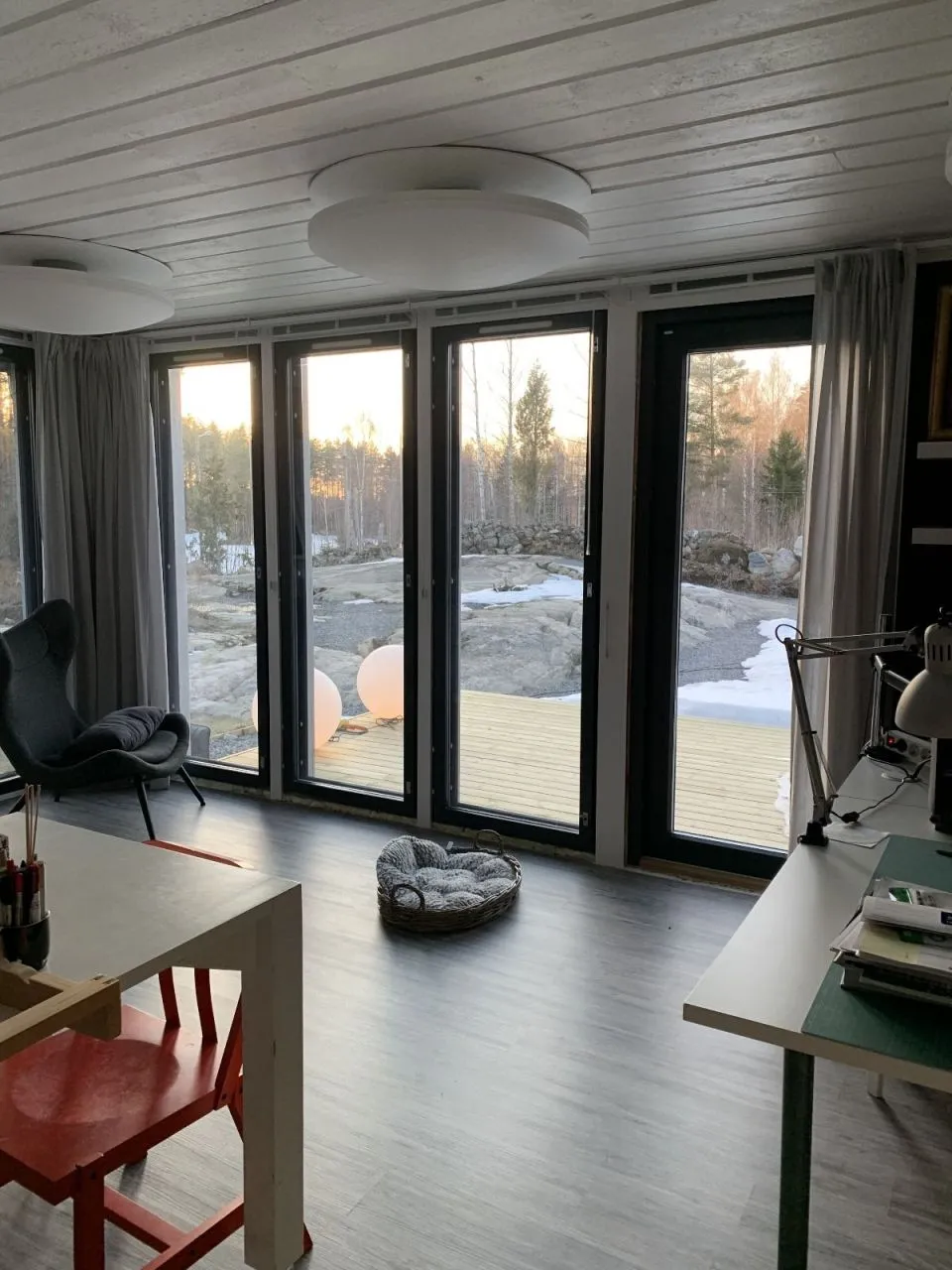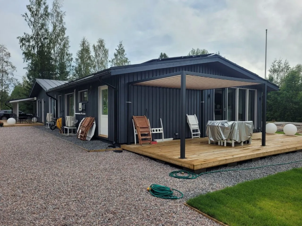 Полностью реновированная вилла для круглогодичного проживания в пригороде Лахти удобно расположена на собственном уникальном участке, где сочетаются природный ландшафт и вписанные в него современный дизайн.