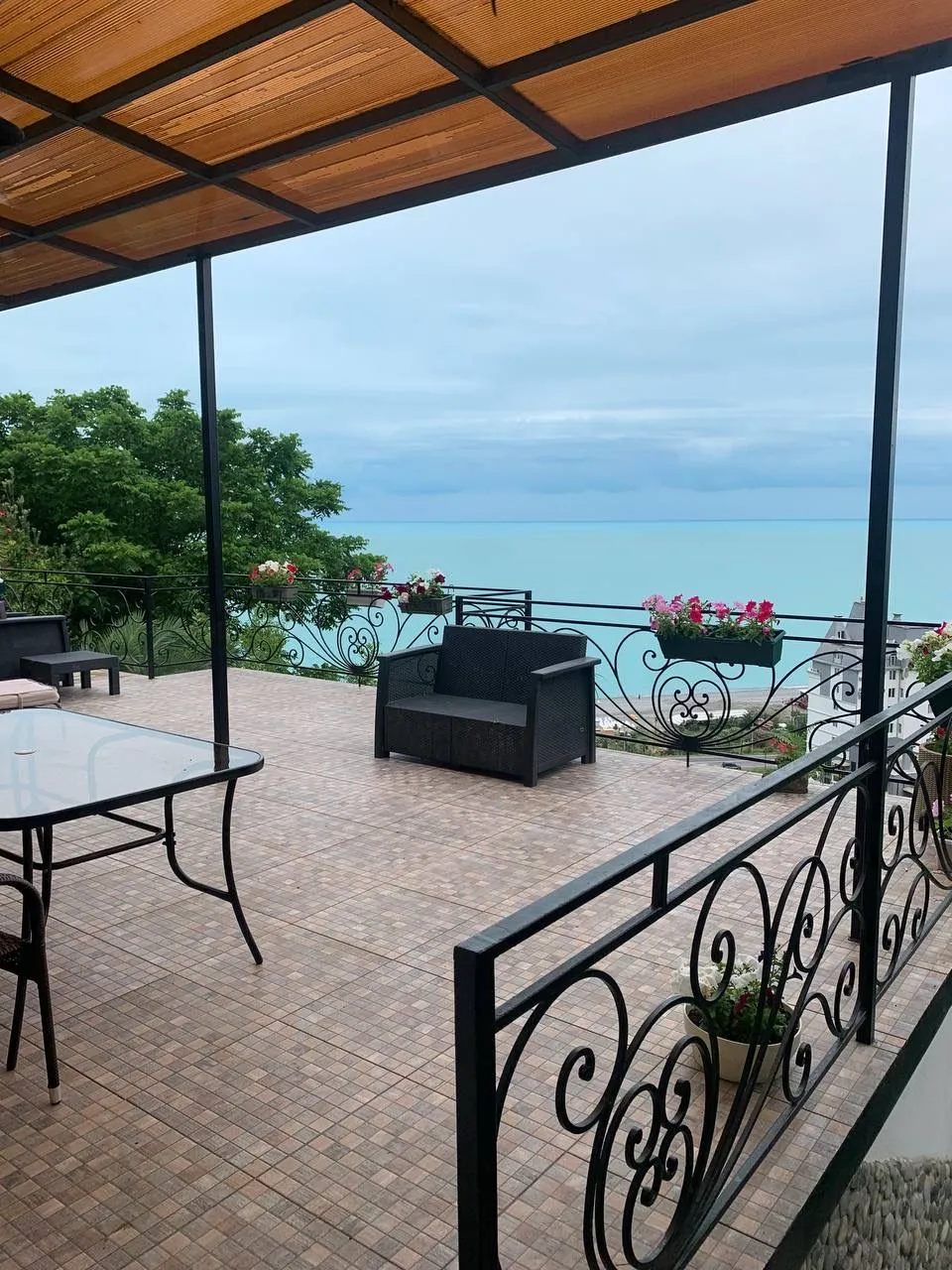 7 комнат, зал, кухня, терраса с великолепным видом на море, побережье, Батуми, горы.Во всех комнатах балконы, душ и туалет.