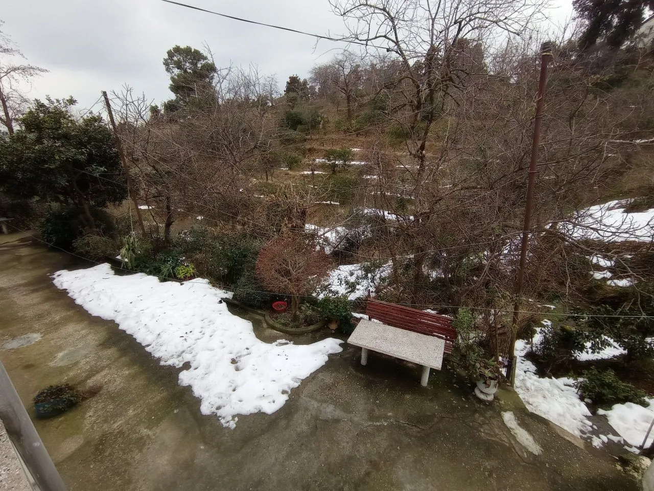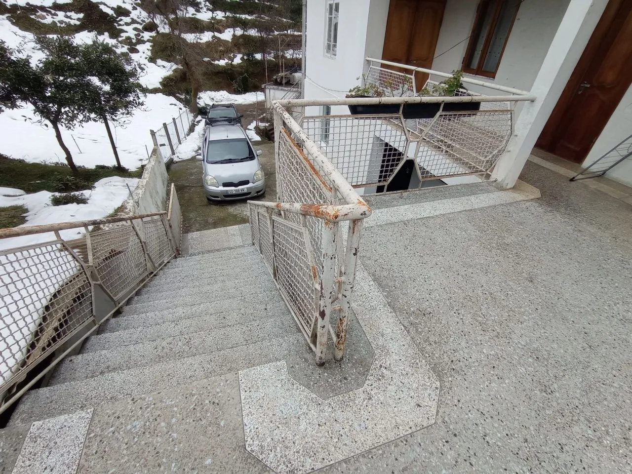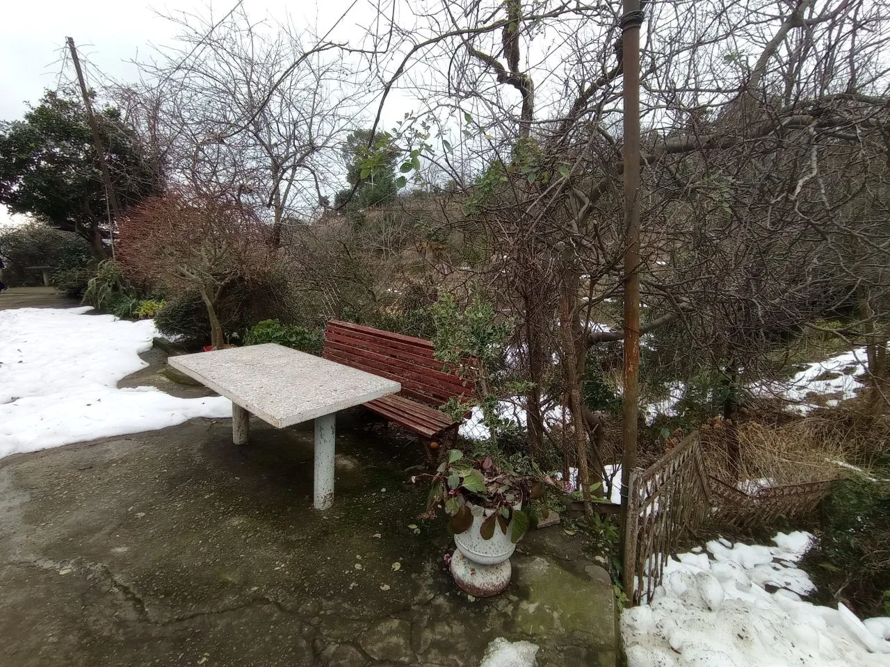 На территории есть сад с фруктовыми деревьями.