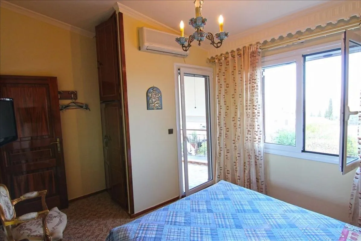 Продается 3-этажный коттедж площадью 180 кв.м на острове Корфу. Первый этаж состоит из одной спальной комнаты, 2 кладовых. Второй этаж состоит из гостиной, одной кухни, одного санузла. Третий этаж состоит из 3 спальных комнат, одной ванной комнаты. Из окон открывается вид на море, на горы. У объекта есть солнечные батареи для нагрева воды, камин, кондиционер, тенты, отопление. Недвижимость продается с мебелью. К недвижимости относится парковочное место, сад, гараж. К дому прилегает земельный участок площадью 647 кв.м, который имеет возможность строительства дополнительных 200 кв.м. жилой площади.Характеристики объекта