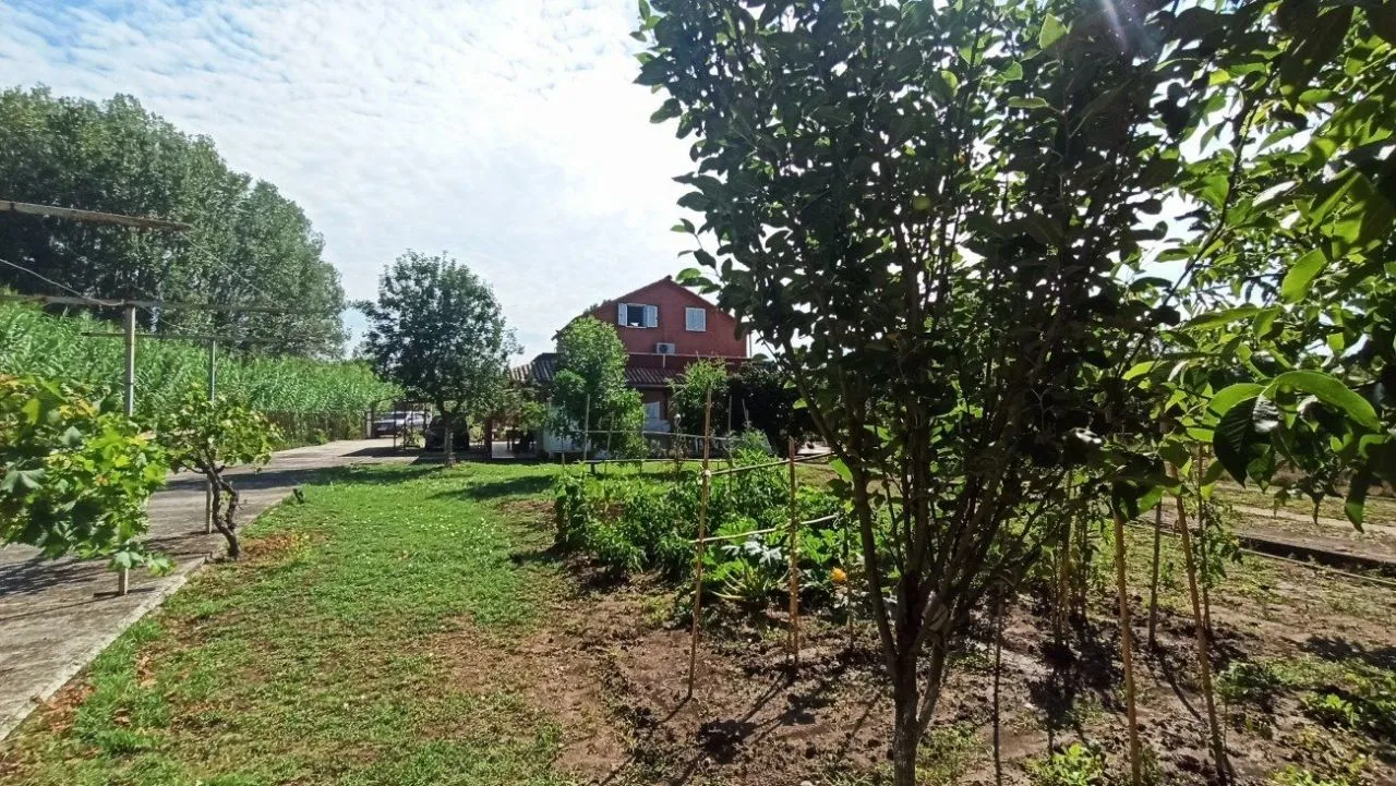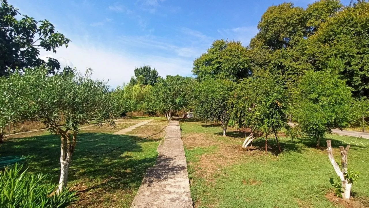 Участок площадью 1300 кв.м. ровный, огорожен, засажен различными фруктовыми деревьями. Есть кладовая и цистерна для сбора дождевой воды.