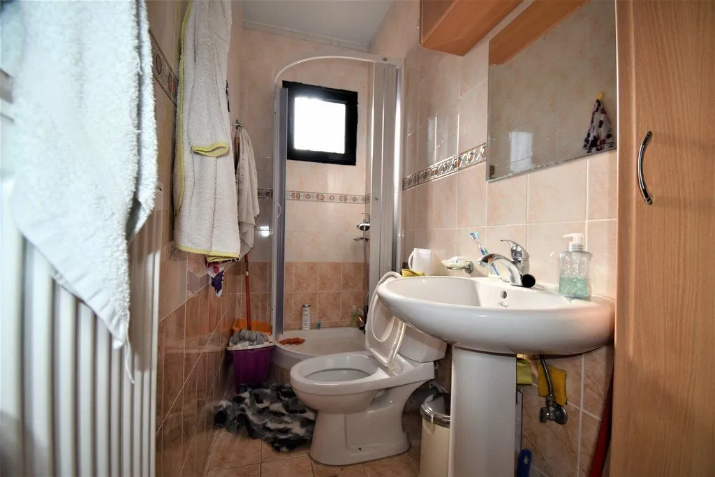 Частный дом 75 кв.м с отдельной гостевой комнатой 13 кв и ванной комнатой, отоплением и кондиционированием. - Жилой район с постоянными жителями - На участке 346 кв.м.с садом - В отличном состоянии с отоплением и кондиционированием - Крытым барбекю - Крытая парковка - Высокий цокольный этаж с большой террасой - 2 спальни - Гостиная - Кухня с со столовой зоной - Ванная комната - Расстояние от моря и Лутраки 5 км