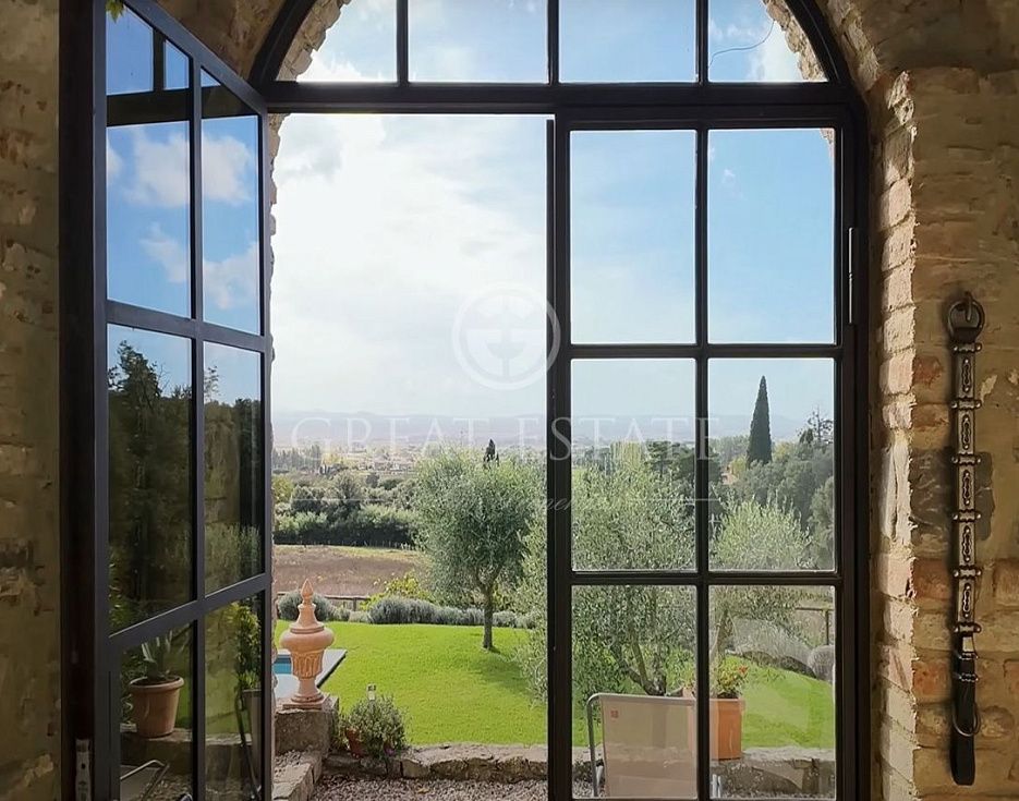 Очаровательная вилла площадью 285 кв.м на трех этажах (4 спальни, 5 ванных комнат) с великолепным бассейном 16x4 м. Эта старинная вилла, недавно отреставрированная, находится всего в нескольких минутах езды от романтического городка Кортона. На первом этаже расположены элегантная прихожая с ванной комнатой, светлая кухня с двумя французскими окнами, выходящими на ухоженный внутренний дворик и бассейн, прачечная, просторная гостиная и обеденный зал с камином. На втором этаже, куда ведут внутренняя и внешняя лестницы, находятся три спальни с ванными комнатами. На третьем этаже - спальня с ванной комнатой. К дому примыкает постройка/склад для садового инвентаря площадью 21 кв. м и башня площадью 22 кв. м на трех уровнях, полностью отреставрированная: на цокольном уровне находится восхитительная кантина со сводчатым потолком, а первый и второй этажи используются как складские помещения, но могут быть использованы в качестве студии. Собственность окружает земельный участок площадью около 1,4 га с оливковой рощей и садом площадью 3 133 кв. м, где расположен бассейн 16 x 4 с соленой водой.
