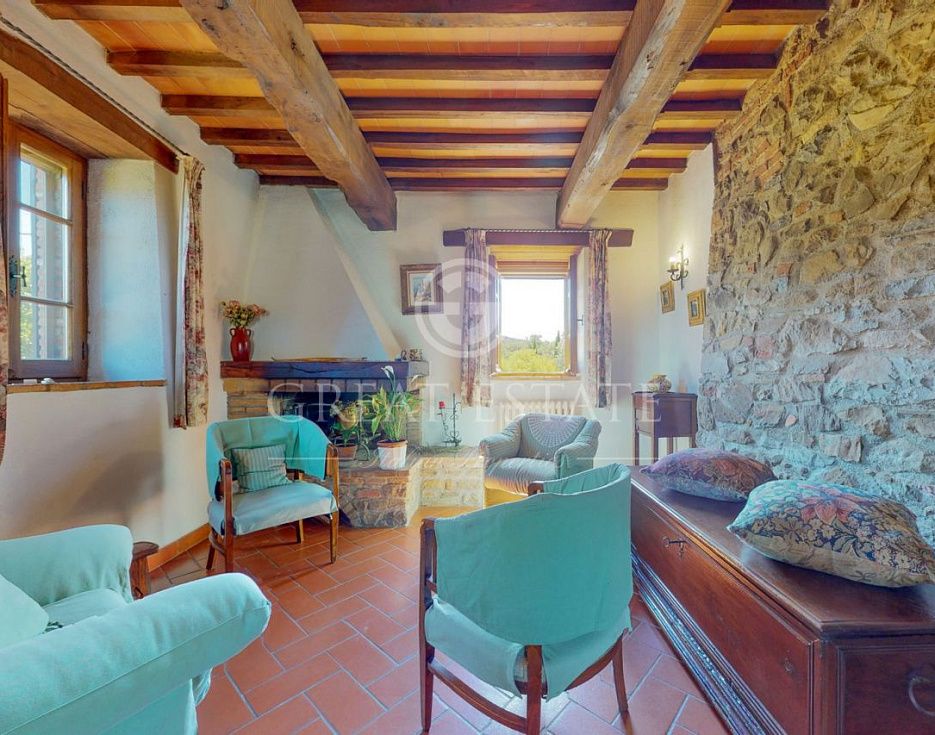 Дом был построен вокруг старинной сторожевой башни XVII века, эта структура с годами постепенно расширялась, пока после полной реставрации в 1993 г. не превратилась в великолепную резиденцию с гармоничным и очень характерным архитектурным стилем. В своем нынешнем виде - это дом на двух уровнях (помимо башни, которая возвышается еще на один уровень) общей площадью около 200 кв. м. На первом этаже находится гостиная зона, состоящая из салона с камином, кухни, обеденного зала и ванной комнаты с душем; на втором этаже, куда также можно попасть по внешней лестнице, расположены вторая гостиная зона с камином, две спальни и ванная комната; а на третьем уровне, в башне, находится спальня. Земельный участок площадью около 1,8 га с оливковой рощей (250 олив), садом/ парком и огородом. Также имеются две хозяйственные постройки 25 и 40 кв.м, которые могут использоваться как гаражи и склады для инструментов. Очаровательный вид на долину и окружающие холмы.