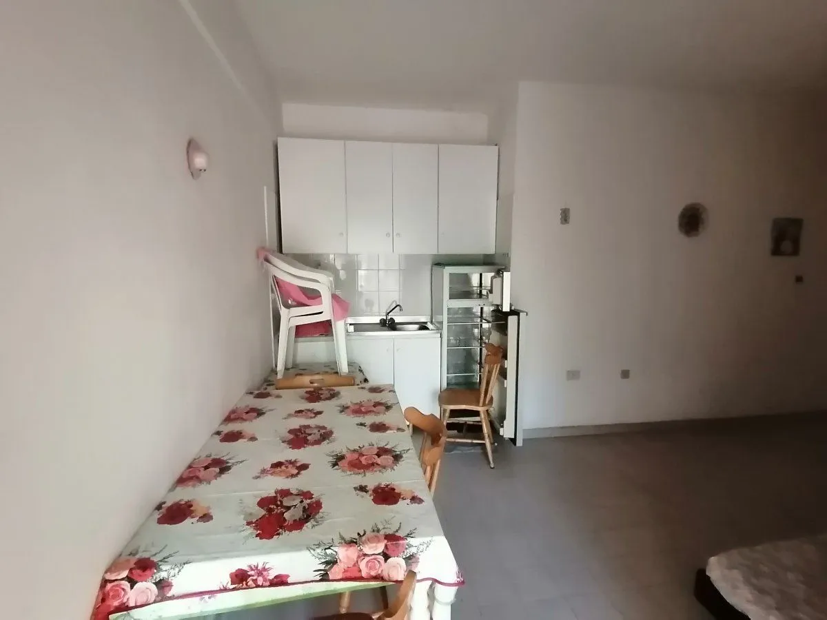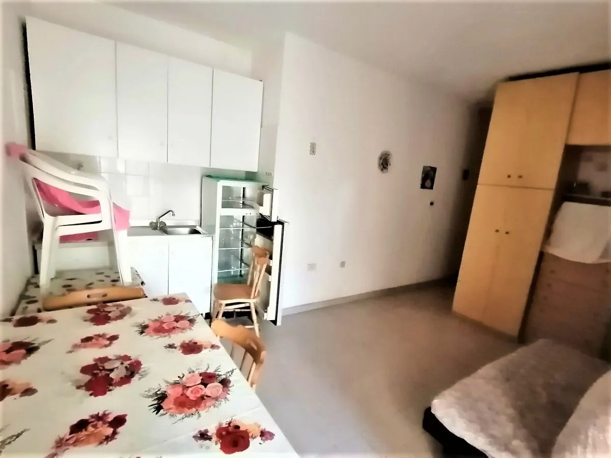 Вашему вниманию предлагаем квартиру-студию общей площадью 30 кв.метров, расположенную по улице Lauro в жилом комплексе "Centro Marina". Центральный район, третья береговая линия от моря, первый этаж. Это означает, что у вас есть собственный вход через небольшой садик. Квартира-студия имеет просторную комнату с кухонным углом, санузел и коридор. Идеально для пожилой пары или семьи с жиотными. Т.к. есть место для выгулки в собственном дворике.