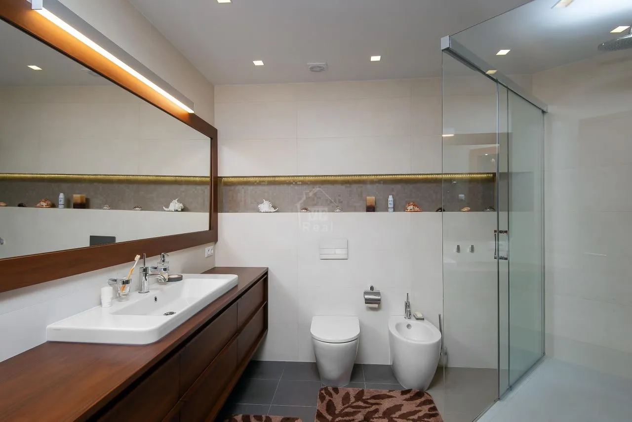 Предлагаем к приобретению просторную и светлую квартиру в Дзинтари, на ул.Мадонас 5, общей площадью 115, 3 м2 , состоящую из жилой площади 107,3 м2 и 2 балконов общей площадью 8 м2. Квартира состоит из просторной гостиной, объединенной с кухней, санузла и 2 изолированных комнат. Главная спальня со своей ванной комнатой. Выполнен качественный ремонт, в гостиной камин. Стоимость парковочного места в подземной стоянке — 15000 EUR До моря примерно 150 м. Благоустроенная территория, просторная детская площадка. Концертный зал Дзинтари и пешеходная улица Йомас в 5 минутах ходьбы. Качественная квартира в Дзинтари с 2 спальнями.