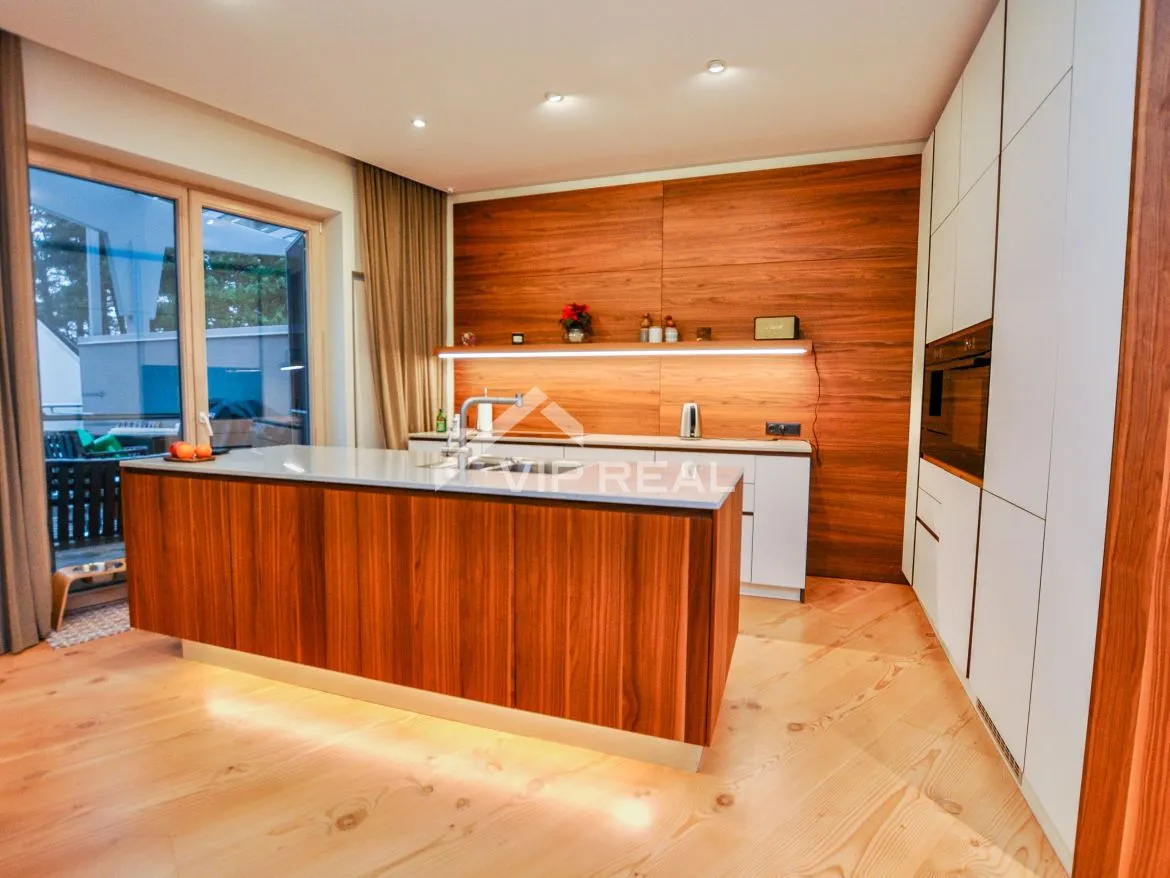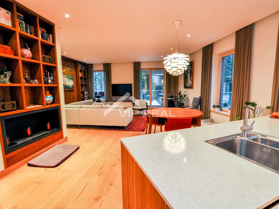 Эксклюзивная квартира в элитном районе г. Юрмала, в Лиелупе.В квартире расположены просторная гостиная с камином, объединенная с кухней, и выходом на террасу. Две спальни, каждая со своим санузлом, а так же отдельный гостевой санузел. Так же есть терраса на крыше. Качественная отделка, акустическая система Bang & Olufsen, кухня и встроенная мебель MINT Furniture, новая и качественная мебель из Дании.В цену входят 2 парковочных места на подземной стоянке и 1 кладовое помещение. Квартира продаётся со всей мебелью и оборудованием.До моря 400 метров. До улицы Йомас и концертного зала Дзинтари 7 минут езды на машине. новостройка, все городские коммуникации, эксклюзивная отделка в современном стиле, современный ремонт, полная меблировка, встроенная кухня, встроенная мебель, камин, подземный паркинг, интернет, лифт, видео наблюдение, пост охраны, консьерж, новый проект с полной отделкой.