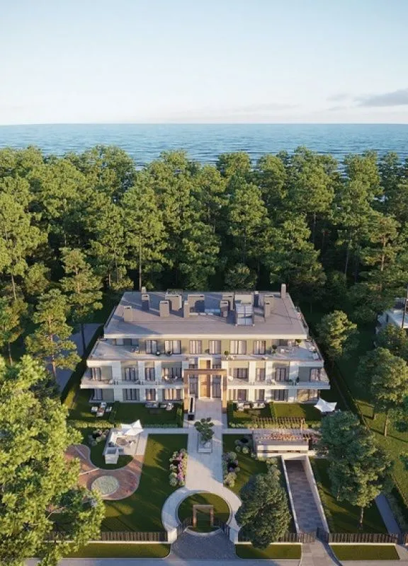 Современное 3-х этажное здание с большим количеством зеленых насаждений и живописным видом на Балтийское море, пляж и сосновый лес. Закрытая территория проекта, подземная парковка. В проекте предусмотрены только 15 квартир с жилой площадью от 67 м2 до 233.4 м2, а так же 23 парковочных мест, 14 подсобных помещений. Высота потолков в квартирах 3.40-3.60 м. Есть возможность приобретения места для машины в подземной стоянке (30 000 евро) и места для хранения (2 500 евро за м2). В доме будет консьерж и охрана.