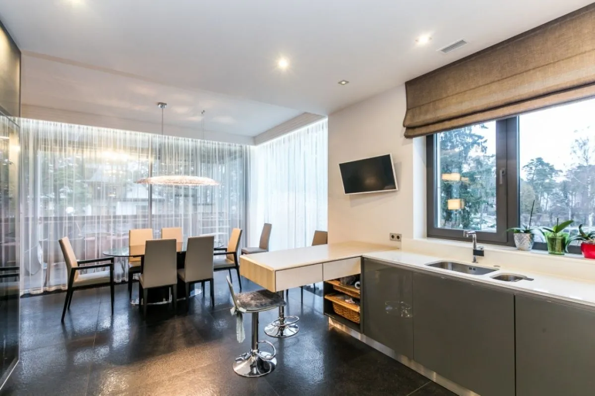 Продаем роскошный пентхаус в клубном доме ARTHAUS!Проект ARTHAUS создан в тихом районе элегантных частных вилл и элитарных жилых домов, на улице Капу, где нет толкотни туристов и повседневной суеты. Эксклюзивная застройка микрорайона, которая органически сливаеться с окружающей средой, создает особенную атмосферу для прогулок в наполненные тишиной и спокойствием вечера. Однако, недалеко находятся концертный зал Дзинтари и центральная пешеходная улица - улица Йомас. Сутью проекта является непосредственная близость моря. Пляжные апартаменты отделены от морского шума гула, непрестанного волнения, бархатного белоснежного пляжа и ласки морского ветра зоной дюн шириной всего лишь 100 метров. Здесь возможно всё: прогулки вместе с семейным питомцем по сосновому бору, утренние пробежки по берегу, медлительный отдых на морском песке, поездки на велосипеде по вымощёнными дорожками, медитация в наполненных солнцем дюнах.