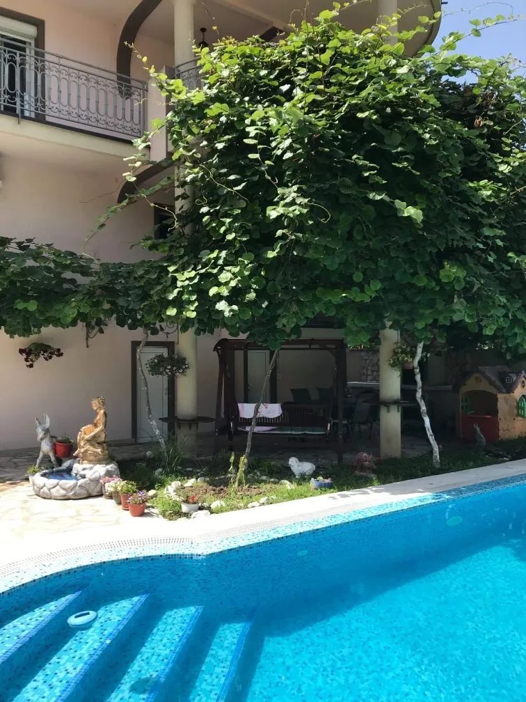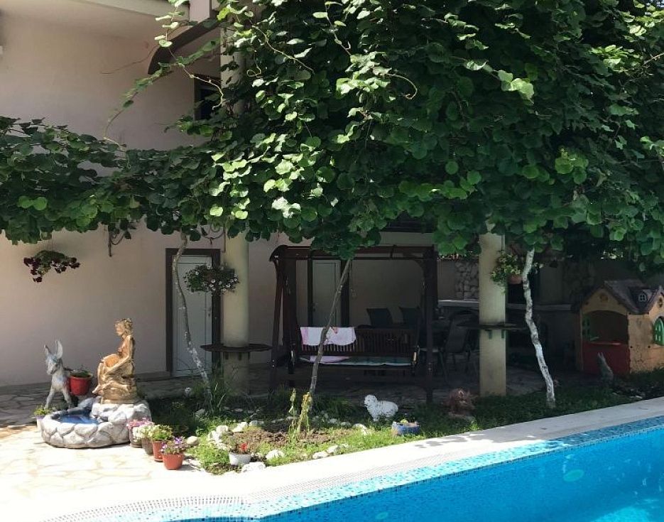 5793. Семейный дом с автономными этажами. Три этажа: 1-1-й и 2-й имеет по две спальные комнаты и по два сан узла, кухни; третий этаж - 3 спальные комнаты, кухню, 2 ванные комнаты, террасы. Полностью оснащен мебелью и техникой. Видеонадзор. Двор имеет большой бассейн с полным оборудованием и местом отдыха, гриль/барбекю, на 1-м этаже имеется баня/сауна. Подсобное помещение. Дом тщательно утеплен.