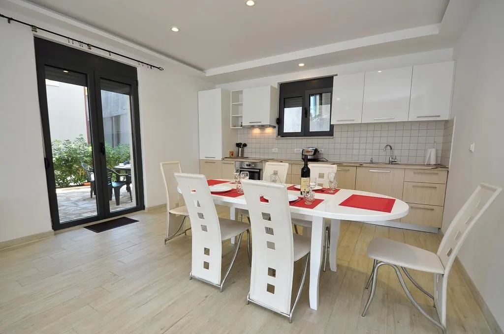 Просторные апартаменты с двумя спальнями и двумя ванными комнатами,площадью 94 м2, в роскошном жилом комплексе из 3 зданий, в общей сложности с 8 апартаментами, недалеко от знаменитого пляжа Bajova Kula. Расстояние до моря 30 метров.
