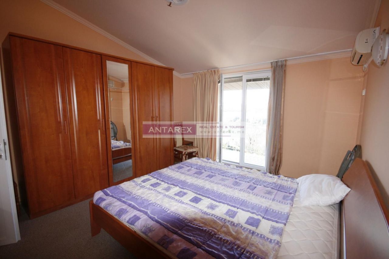 Продаётся отличный жилой дом с видом на море площадью 120м2 на участке 363м2. Дом расположен в 500 метрах от центра Тивата и в 2 км от аэропорта. В доме три этажа. С каждого этажа имеется вид на море. Дом полностью меблирован и оборудован кухней и бытовой техникой. Планировка: на первом этаже, площадью 35 м2, расположена отдельная кухня, большая столовая, ванная комната и терраса. На втором этаже площадью 45 м2 – большая гостиная, ванная комната и терраса. Третий этаж имеет площадь 45 м2 – 3 спальни, ванная комната и 2 террасы.