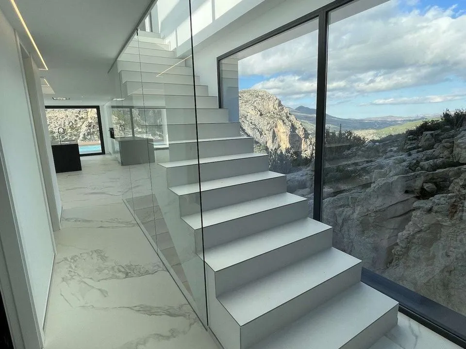 Эта роскошная вилла с панорамным видом на море и горы буквально интегрирована в скалу горы, сочетает в себе рационалистическую архитектуру с теплотой благородных материалов и красками природы. Белоснежные и известняковые стены участка подчеркивают характер проекта, интеграцию с природной средой, между небом и морем. В доме есть все удобства, чтобы наслаждаться им. Зона отдыха с джакузи с прекрасным видом, барбекю, дизайнерский сад, пейзажный бассейн, гардеробные в двух спальнях, большая прихожая.
