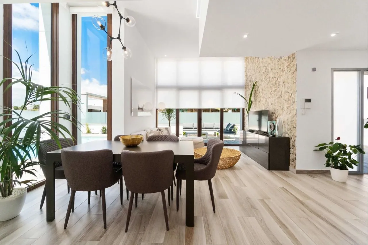 Предлагаем вам современную, роскошную виллу, расположенную в Ориуэла Коста. Вилла находятся на участке площадь - 212 кв. м., на территории расположен собственный бассейн, зеленная зона для пикника и отдыха, подземный гараж. Вилла общей площадью - 264 кв. м., состоит из 2 этажей, имеет 3 спальни и 3 ванные комнаты, просторный салон с кухней, террасу и солярий (большая терраса на крыше, где можно оборудовать зоны отдыха, загорать). Есть подвальное помещение, где можно обустроить рабочую зону, бильярдную или сауну. Большие панорамные окна во всех комнатах и гостиной позволяют из любого уголка дома насладиться прекрасным видом.