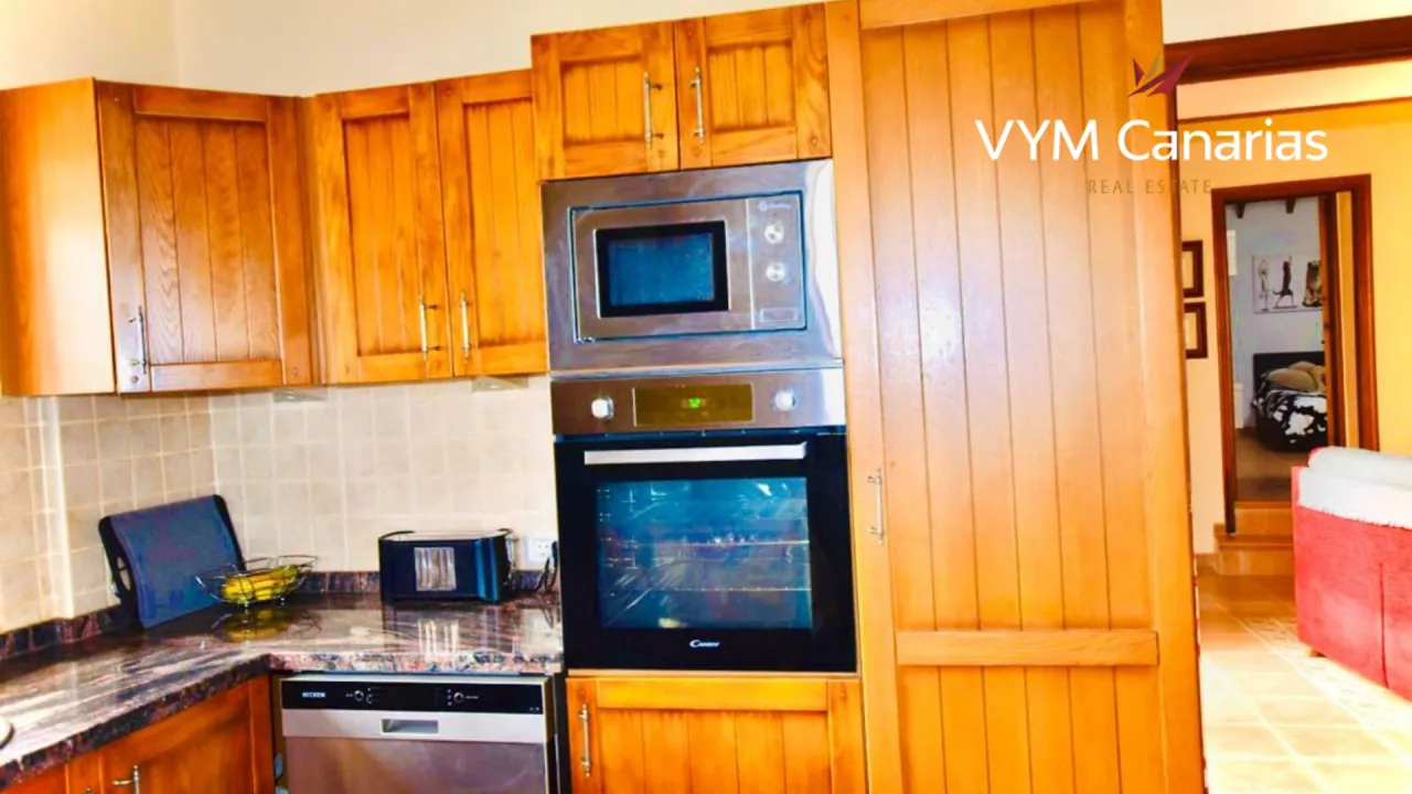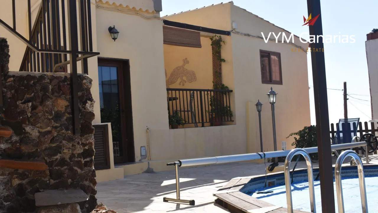 Продается отличный дом 200 м2, который расположен на участке с садом общей площадью 750 м2 в Гранадилла де Абона (Granadilla de Abona). Дом имеет 3 спальни и 2 ванные комнаты, гостевой апартамент. Отдельную кухню, столовую и гостиную. Крытые и открытые террасы, бассейн, гараж. На земельном участке есть как декоративные, так и фруктовые деревья, цветочные клумбы и другие насаждения. С соляриума на крыше открывается красивый вид на горы и окрестные поселки.