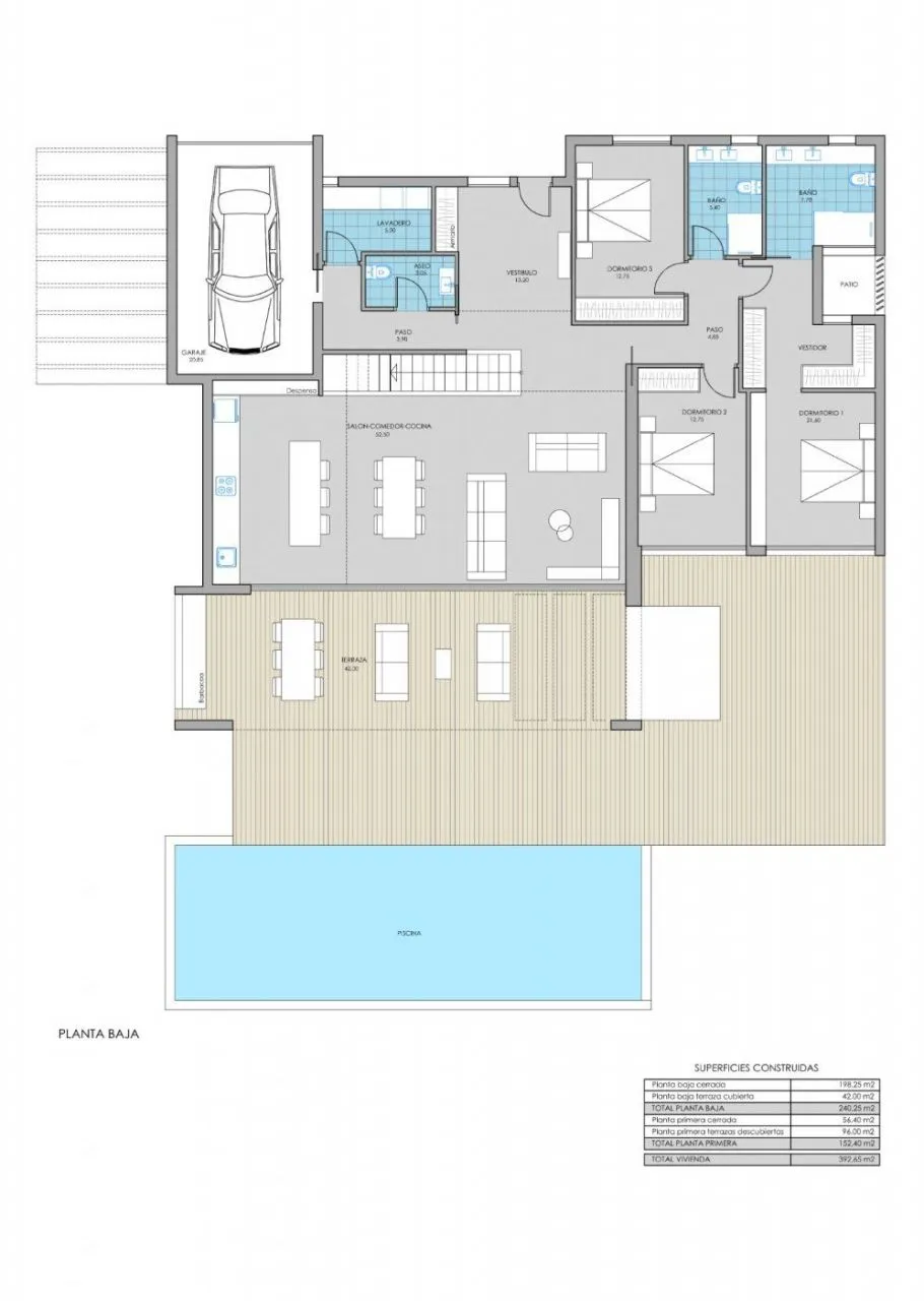 СОВЕРШЕННО НОВАЯ ВИЛЛА В ГОЛЬФ-КУРОРТЕ FONT DEL LLOP !!! Эта вилла мечты, расположенная на великолепном гольф-курорте La Font del Llop, в самом сердце провинции Аликанте, находится всего в 10 минутах от международного аэропорта Аликанте-Эльче, в 15 минутах от центра Аликанте, в 10 минутах от центра города. Эльче и в 20 минутах от прекрасных девственных пляжей Средиземного моря. Короче говоря, совершенно привилегированное расположение: на первой линии поля для гольфа с услугами близлежащих городов у вас под рукой. Вилла - это роскошная вилла, расположенная на участке площадью 765 м², в самой престижной зоне курорта, где есть ограниченный доступ для владельцев, с полностью южной ориентацией, поэтому здесь можно наслаждаться солнцем в течение всего дня. Он расположен на двух уровнях, что является результатом уникального и эксклюзивного дизайна, с просторными, открытыми и светлыми помещениями, в которых большинство комнат ориентировано на поле для гольфа, чтобы максимально использовать его прекрасные виды. В главной комнате мы находим гостиную с большими окнами, великолепную открытую кухню, кладовую, прачечную, бесплатный туалет, главную спальню с ванной комнатой и большую гардеробную, две просторные спальни, полностью оборудованную ванную комнату и закрытый гараж с доступом из дом. В дополнение к большой террасе, идеально подходящей для отдыха, насладитесь бесконечным бассейном с 60-метровой водной поверхностью и его просторной верандой со столовой в течение дня и зоной отдыха, с которой можно продолжить созерцание сенсационных видов на природу. На верхнем этаже находится вторая спальня с гардеробной и полностью оборудованной ванной комнатой или с большим и очень светлым кабинетом или кабинетом, а также с выходом на две великолепные террасы. И, наконец, виллу вашей мечты венчает большой солярий с прекрасным видом.Инфраструктура проекта