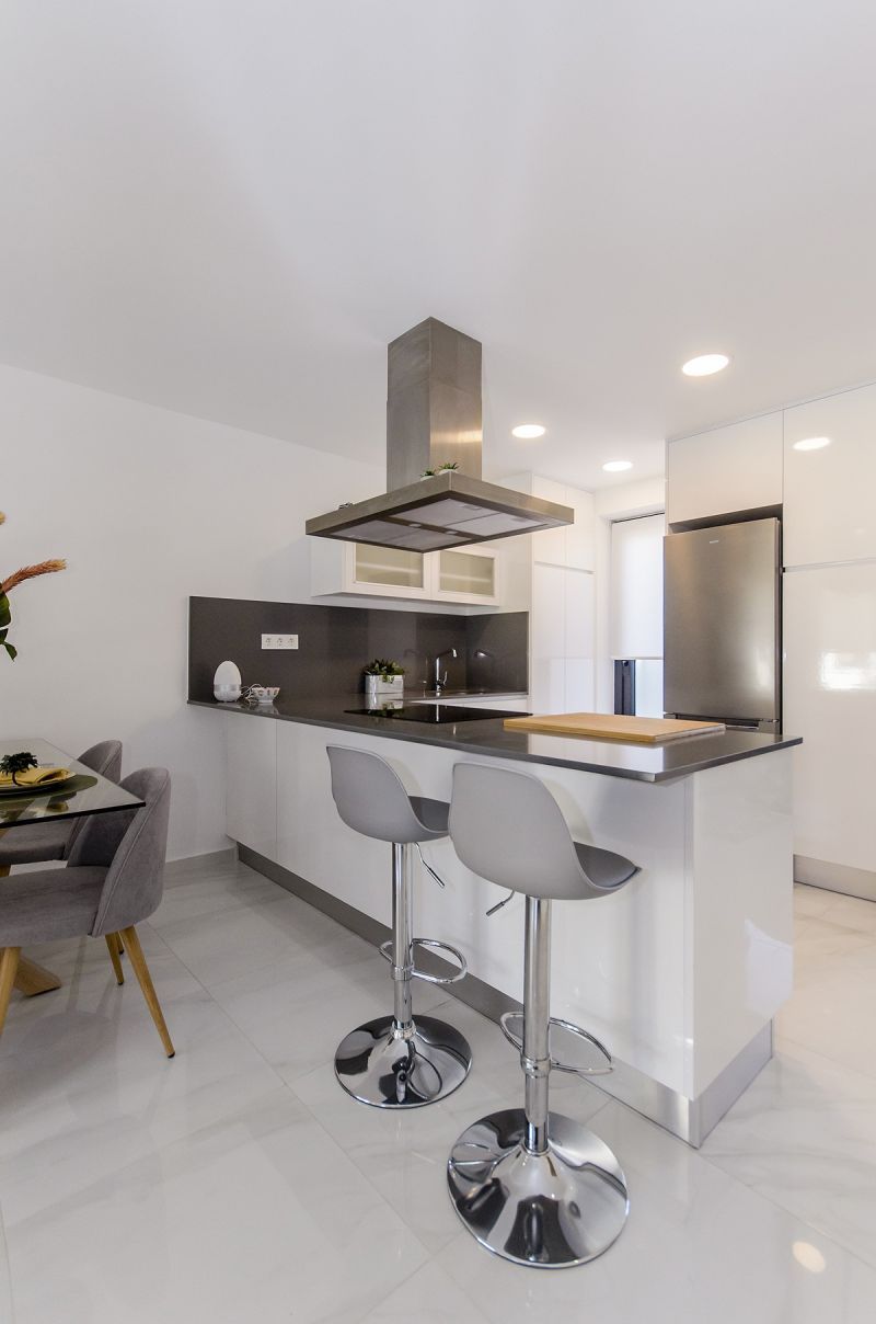 СПЕЦИФИКАЦИЯ:- Кухня оборудована высокими и низкими шкафами с глянцевой отделкой, а также установлена столешница, раковина, декоративная вытяжка; розетки для духовки, посудомоечной и стиральной машин и сушилки.- В ванных: сантехника, зеркала с подсветкой.- Лакированные встроенные шкафы с внутренней облицовкой во всех спальнях; комод в главной спальне.- Двойное остекление типа ClimaGuard.- Автоматические жалюзи в гостиной, кухне и спальнях.- Полы с подогревом во всех ванных комнатах.- Предварительная установка кондиционера.- Бронированная входная дверь с защитным замком и панорамным глазком.- Противоскользящее керамогранитное покрытие на крыльце и террасах.- Готовый сад средиземноморского типа: искусственная трава, декоративный гравий и пальма.- Бассейн 5 х 2,5 с оборудованием для очистки, контроля и хлорирования.