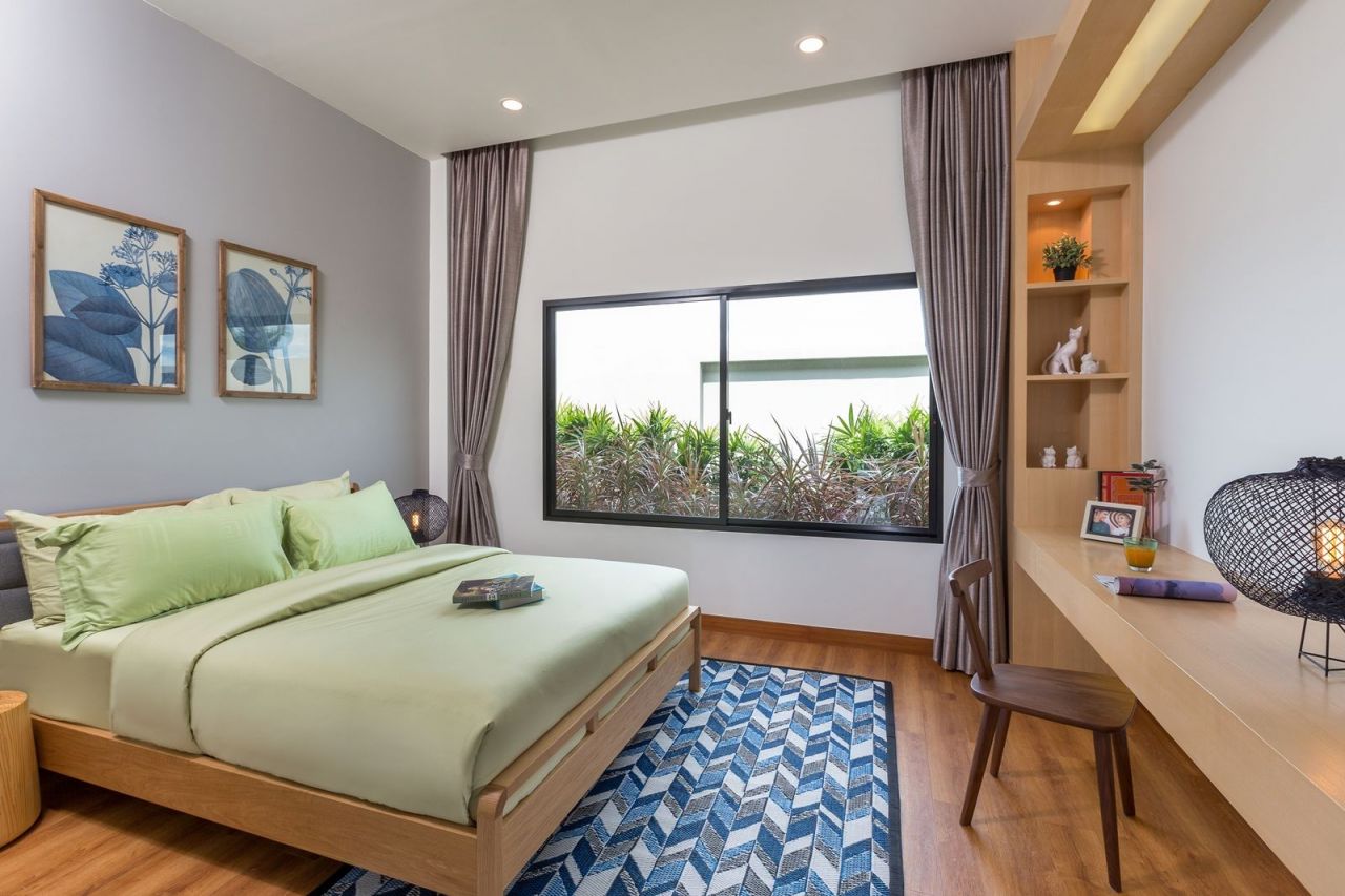 На вилле: современный стиль, личный гараж, тропический сад, частный бассейн, просторная открытая терраса с лежаками и уютной зоной отдыха, светлая отделка, контрастирующая с темными элементами дизайна, полностью оборудованная кухня, уютные стильные спальни, ванные комнаты с ванной (в главной спальне) и отдельным душем.