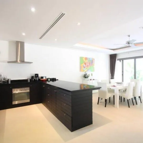 Вилла премиум-класса состоит из двух этажей. На первом этаже – 3 спальни со встроенными гардеробами и ванными комнатами; полностью оборудованная кухня, столовая и просторная гостиная, объединенные в общее открытое пространство, а также прачечная. На террасе второго этажа – площадка для барбекю и крытая беседка в тайском стиле для обедов на свежем воздухе. С террасы открывается вид на окружающие пляж зеленые холмы, покрытые тропическими джунглями, парк у моря, а вечером – на закат. Эти роскошные виллы оформлены в теплых тонах, в отделке использованы гранит, натуральный камень, красное дерево, современная сантехника. На участке – собственный бассейн 35 кв. м с террасой, душем, зонтиком и шезлонгами; парковка с автоматическими воротами, газон, пальмы и другие тропические растения. Описание проекта The Residence Bangtao - комплекс вилл, который был построен на Бангтао в 2005 году и до сих пор является излюбленным местом для жизни экспатов и отдыха гостей Пхукета. Комплекc состоит из однокомнатных вилл каждая из которых имеет открытую террасу на крыше. В The Residence Bangtao 3 типа недвижимости: двухкомнатные таунхаусы, двухкомнатные и трехкомнатные виллы. Всего в проекте 25 просторных вилл. Инфраструктура На территории The Residence Bangtao есть собственный ресепшен, прогулочные дорожки, спа. Что поблизости Идеальное местоположение, в 5-ти минутах ходьбы от пляжа Бангтао. В пешей доступности от комплекса находятся Siam Blue Catch beach club, Tesco lotus express. Также богатая курортная инфраструктура района Банг Тао включает в себя магазины, рестораны, бары, СПА-центры, детский клуб, центр, торговый центр, банки. Для кого подходит The Residence Bangtao расположена в одном из самых престижных районов Пхукета с развитой инфраструктурой, но стоимость жилья относительно невысока. Поэтому проект подходит всем тем, кто любит размеренный отдых в окружении красивейших пейзажей. Этот проект любят все, от молодых семей с детьми до людей почтенного возраста.Характеристики объекта