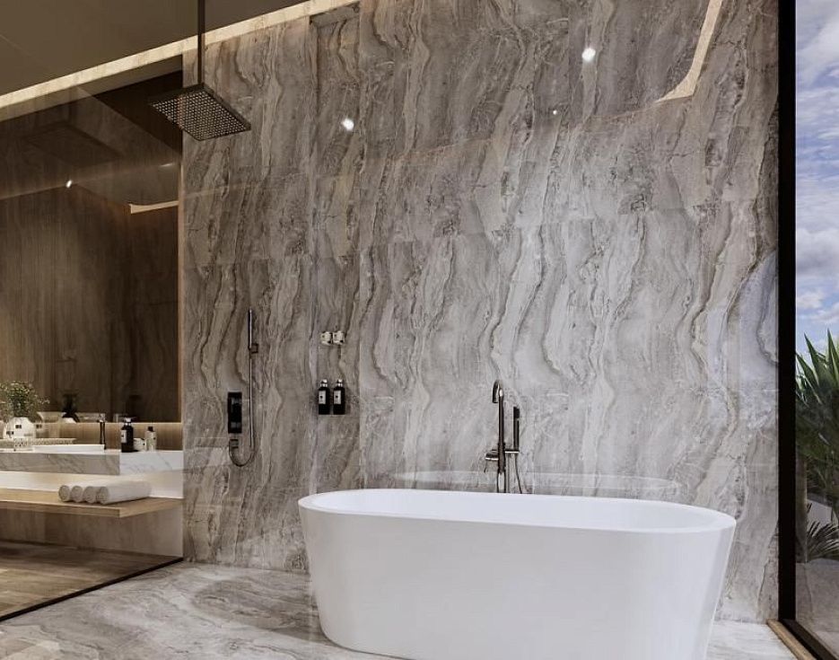 В дизайне очевидны современные элементы, а широкие стеклянные раздвижные двери служат центром внимания. Эти двери не только усиливают ощущение простора, но и служат двойной цели, обеспечивая обилие естественного света.
