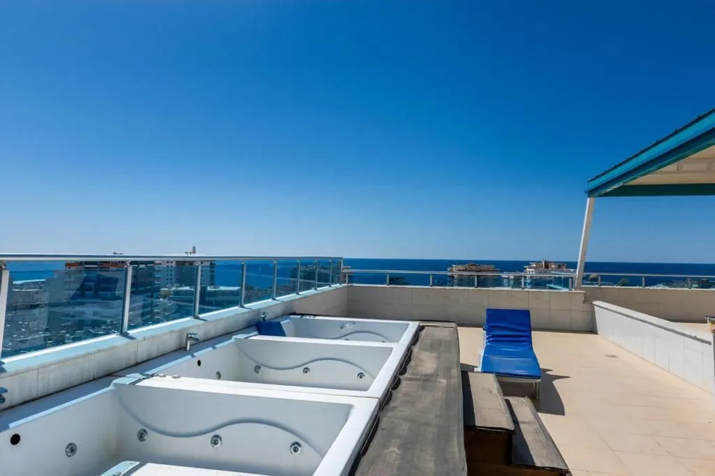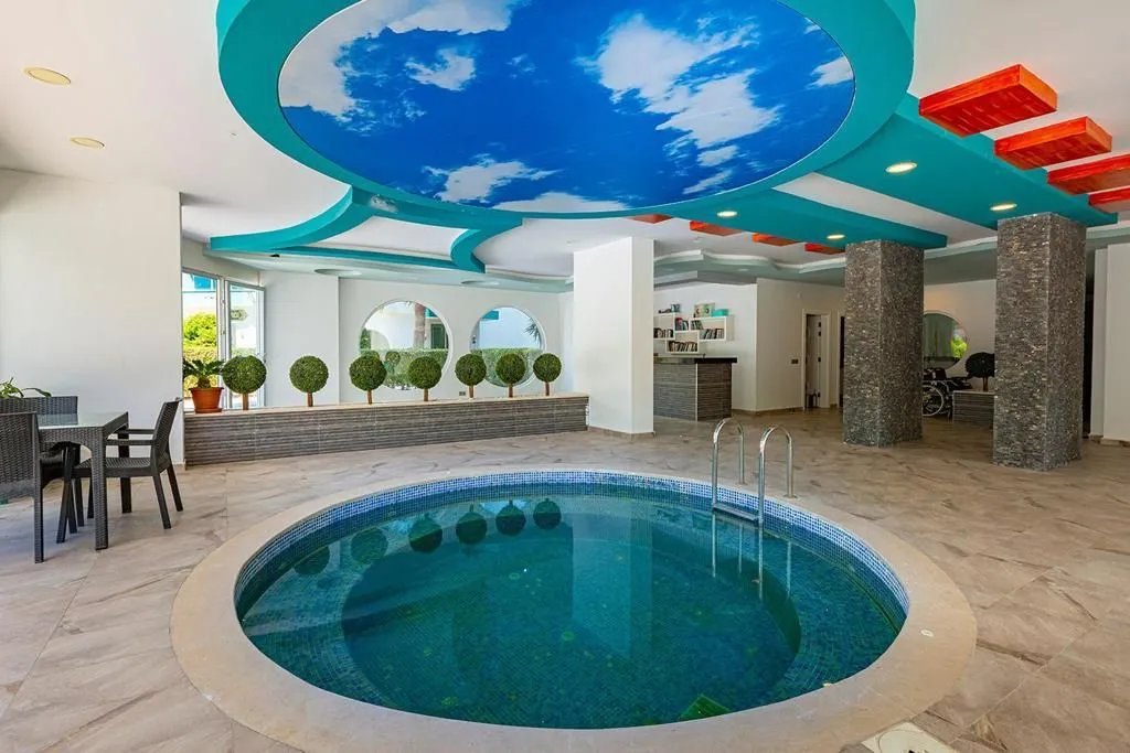 3+1 Роскошная меблированная квартира Этаж:4 Северо-Юго-Восточный фронт 150 M2 2 туалета - 2 душа - 2 балкона 2 открытых, 1 крытый бассейн Двойной лифт Сауна, фитнес Конференц-зал Джакузи и терраса на крыше Парковка - искусственный водопад Генератор - Детский парк Камера наблюдения, Камелия Парковка, контролируемая дверь гаража Расстояние до моря: 500 метров Год постройки: 2015 Плата: 140 тл