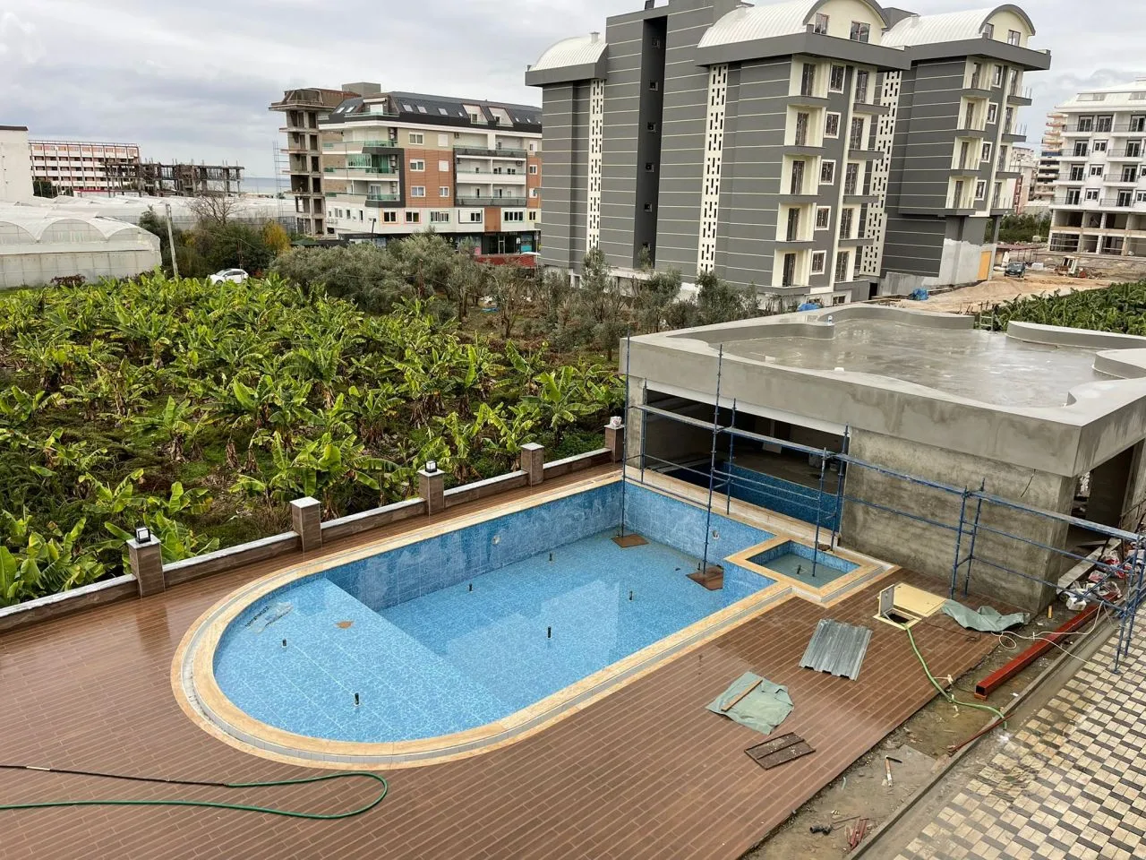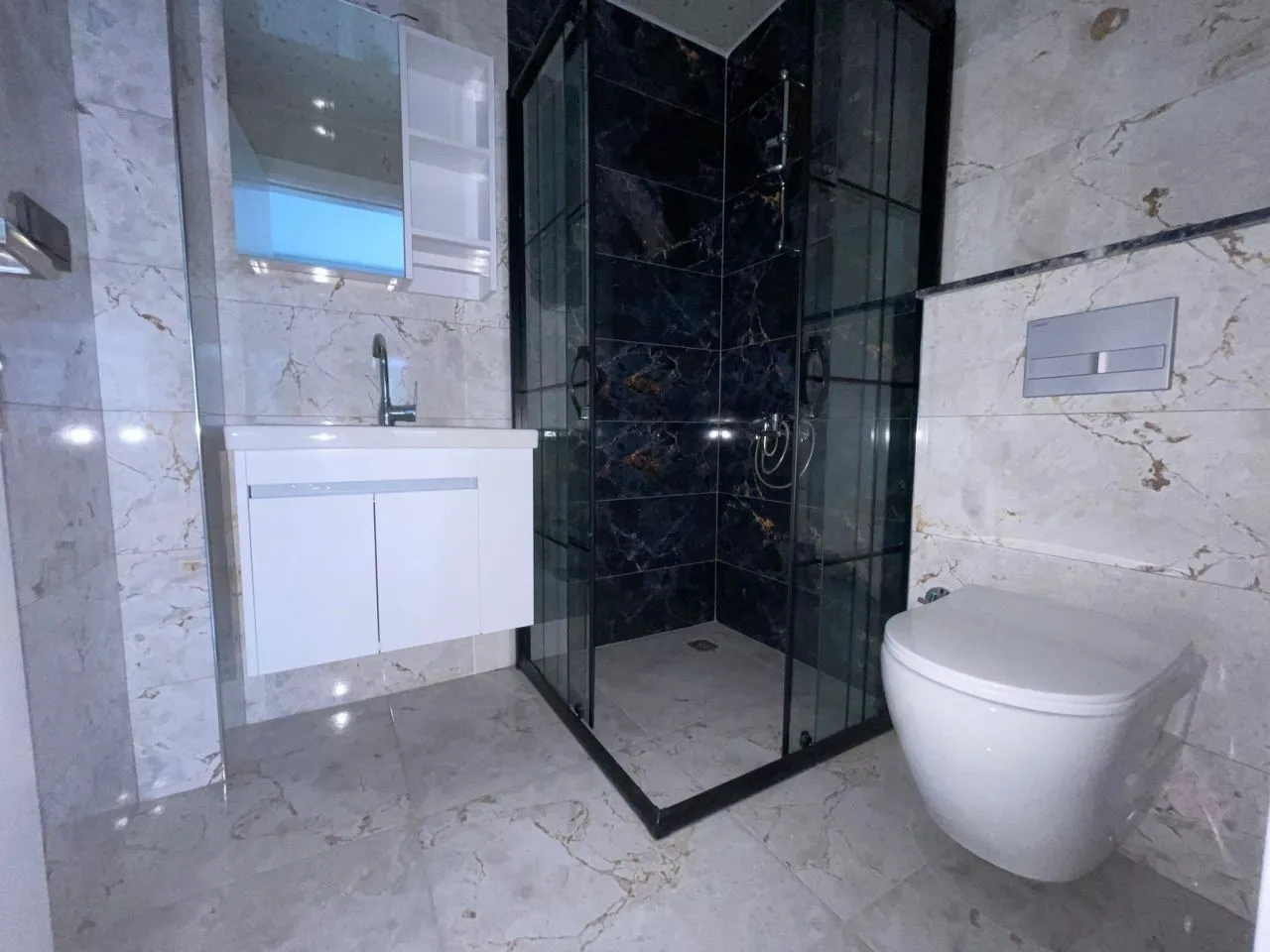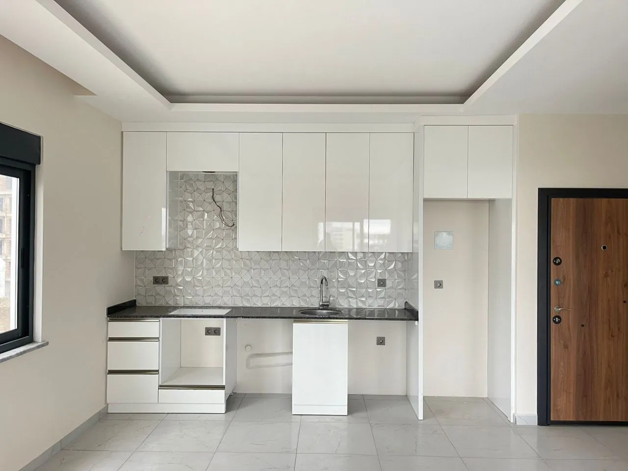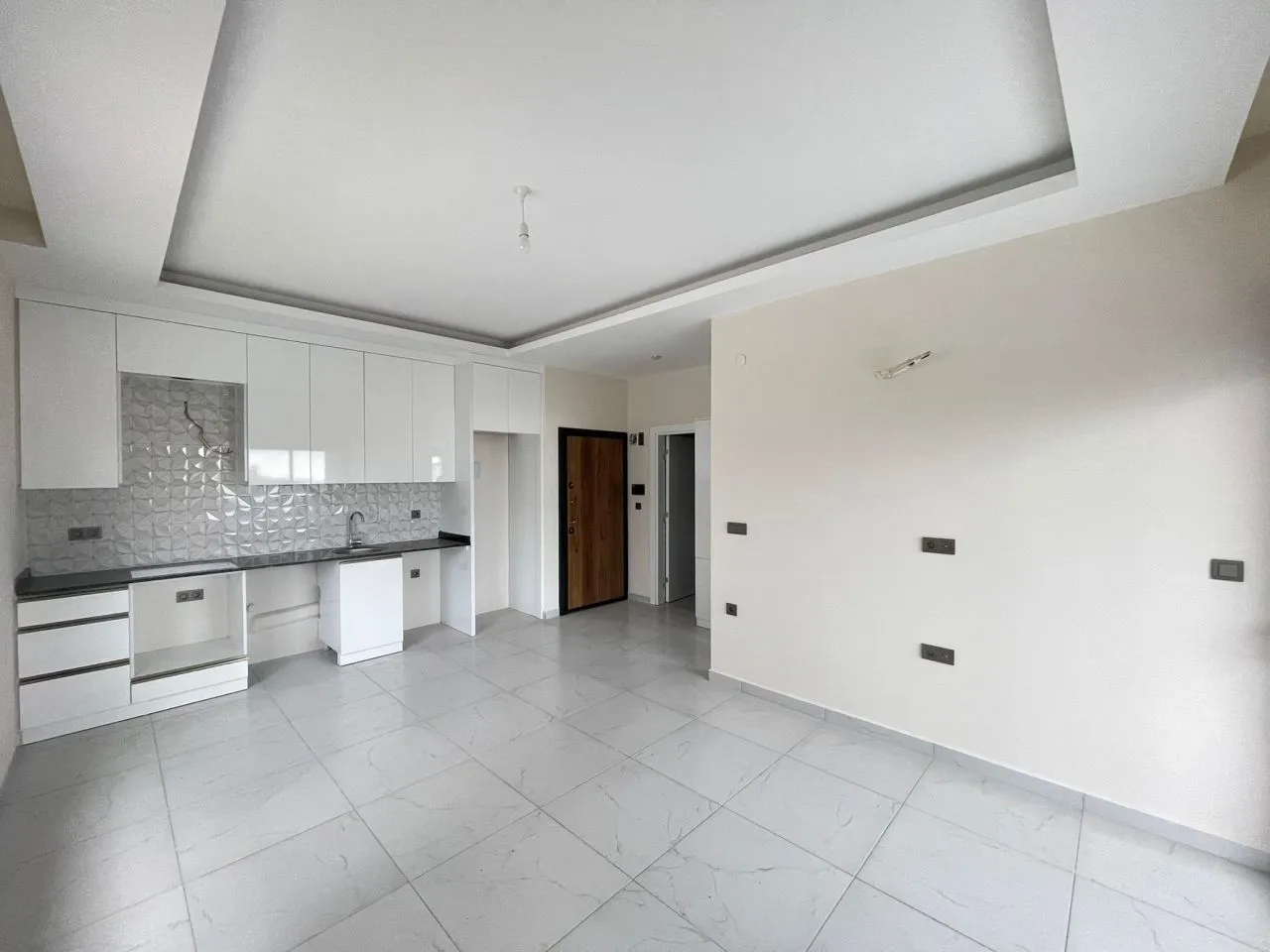 Новые апартаменты 1+1 Каргыджак 60 м2 1-й высокий этаж Вид на море и бассейн Американская кухня Южный фасад