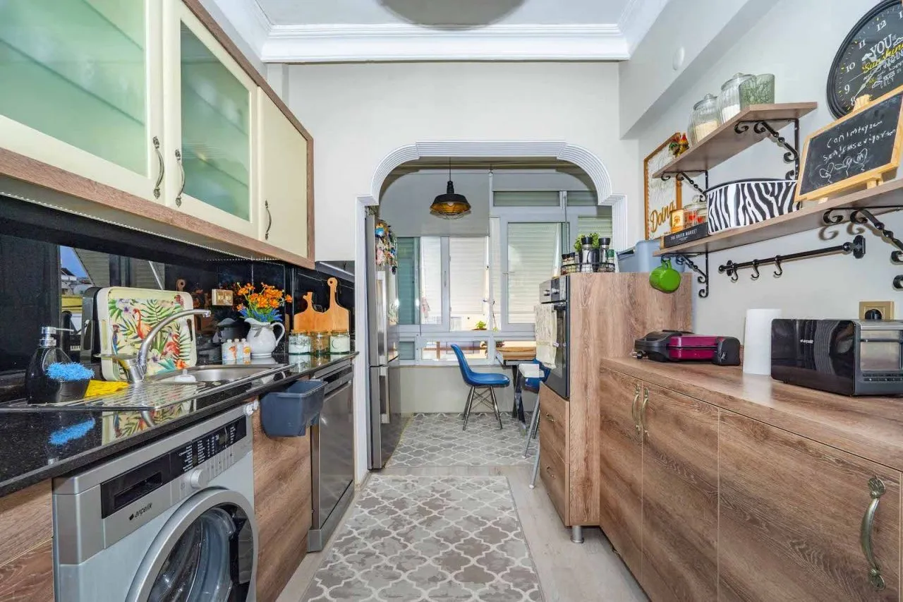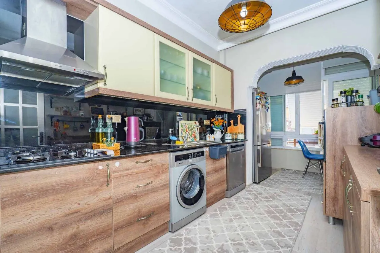 Квартира расположена в центре Алании, поэтому у жильцов в пешей доступности находится большой выбор магазинов, ресторанов, кафе. Также в центральной части сконцентрированы все госструктуры города: школы, больницы, банки и другое.